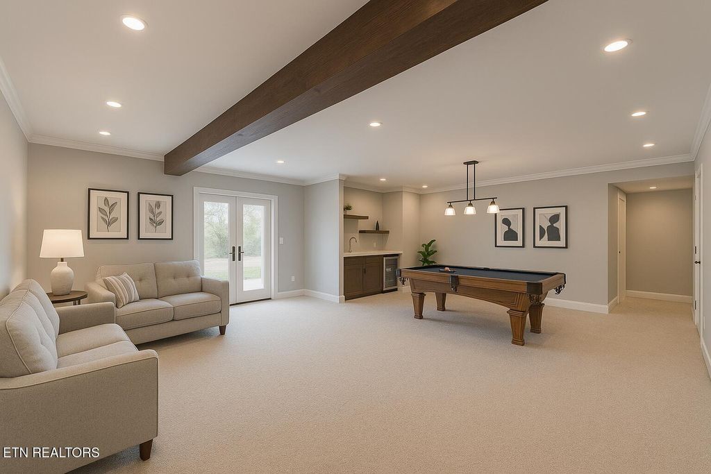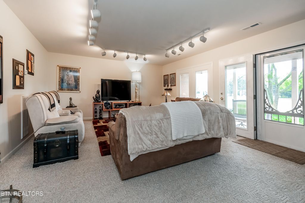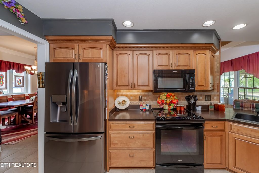 Welcome to this beautifully maintained basement-ranch home located in Kahite neighborhood of Tellico Village, offering stunning golf-course views and exceptional main-level living. As you enter, the foyer opens to a bright great room featuring large windows along the back wall that showcase sweeping views of the 11th fairway and provide access to the covered deck. Just off the foyer is the spacious dining room, and to the left is the private owner's suite with its own deck access, large walk-in closet, and a well-appointed en-suite bath. A second bedroom with its own private en-suite bath is also located on the main level---perfect for guests or multigenerational living. The kitchen is designed for both beauty and functionality, featuring over 25 feet of granite countertop space, abundant cabinetry, an island, breakfast bar seating, and direct access to the great room. A powder room, laundry room, and oversized three-car garage complete the main level. The lower level offers even more living space with two additional bedrooms, a full bath, a large rec room with a wet bar, a game room, and over 800 square feet of storage. You'll also find a walk-out patio, ideal for relaxing or entertaining. A radon mitigation system is already installed, and all furnishings are available for purchase. This home combines generous space, thoughtful design, and premium golf-course views-- all within the sought-after community of Tellico Village.