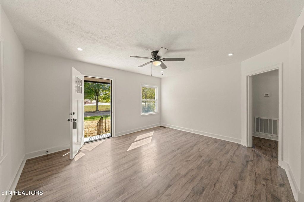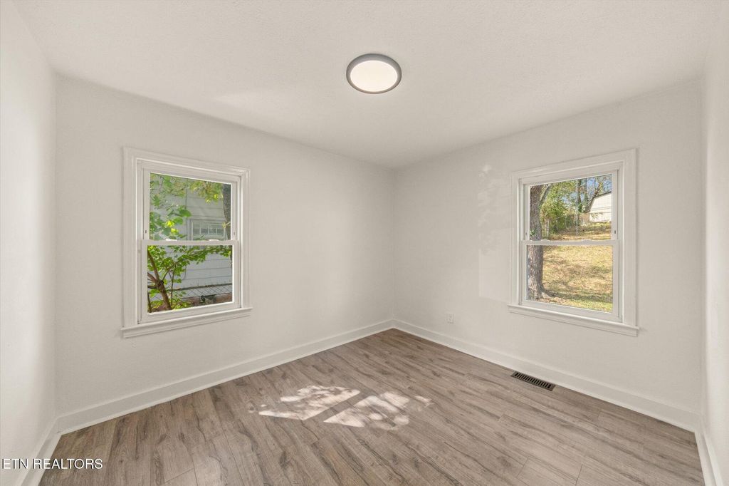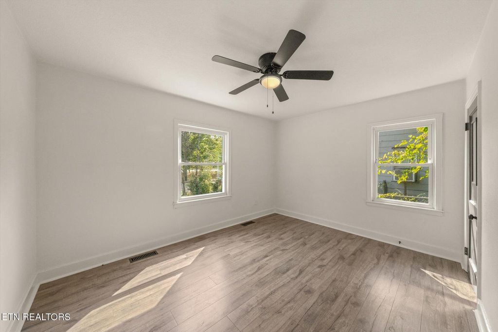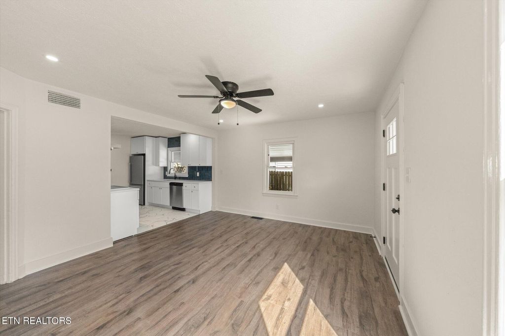 Step inside this newly renovated 2-bedroom, 1-bathroom home featuring a perfect blend of modern charm and timeless design. The inviting open-concept living room and kitchen boast abundant natural light from new vinyl windows, highlighting the bright interior that contrasts beautifully with the home's moody exterior. The kitchen is a showpiece with white shaker cabinetry, quartz countertops, gold accent hardware, a sleek ceramic tile backsplash, floating range vent, flat-top stove, and stainless-steel appliances. Elegant marbled LVP tile, black-accented doors and fixtures, and craftsman-style trim add a sophisticated touch throughout. Both bedrooms are generously sized and newly updated with fresh paint, lighting, and LVP flooring. The bathroom showcases a new vanity, toilet, and tub surrounded by modern finishes. Every detail has been refreshed"”including gutters, siding, front door, outlets, switches, LED puck lights, ceiling fan, and more"”making this home completely move-in ready. Enjoy outdoor living in the fenced backyard with a private patio, mature trees, and a two-car carport. Conveniently located just minutes from downtown Knoxville, I-640 and I-40, Whittle Springs Golf Course, local shopping, and dining. Directly across the street from Boright Park with walking paths, a playground, benches, and shaded green space"”this home offers both comfort and convenience in an ideal setting.