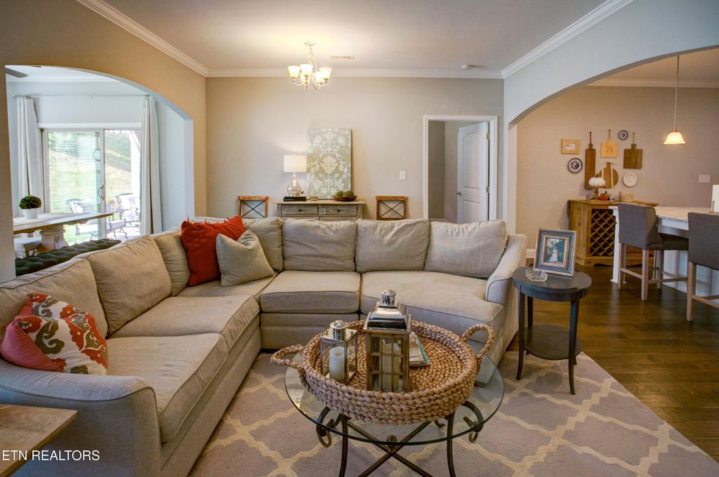 This move-in ready home features an open-concept layout, a luxury kitchen with quartz countertops, gas cook top, decorative hood vent, and upgraded cabinetry. The spacious primary suite offers a tile walk-in shower and generous closet space. Additional highlights include a gas fireplace, 2-car garage, covered patio, and access to community amenities including a pool and pavilion. Conveniently located near shopping, dining, major thoroughfares, area lakes, and the Great Smoky Mountains National Park. Don't miss this opportunity"”schedule your private showing today!