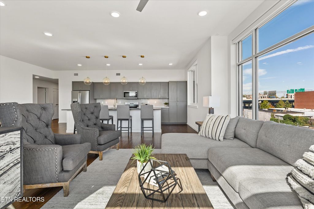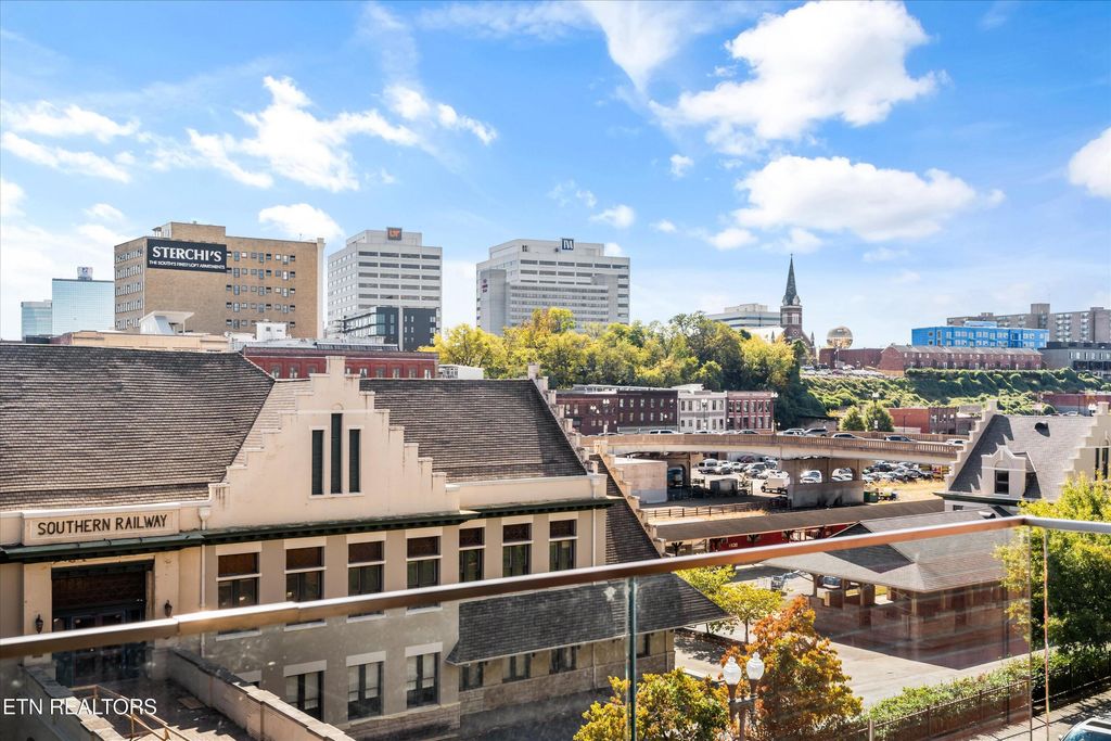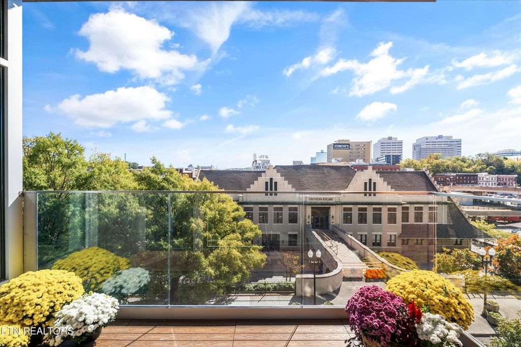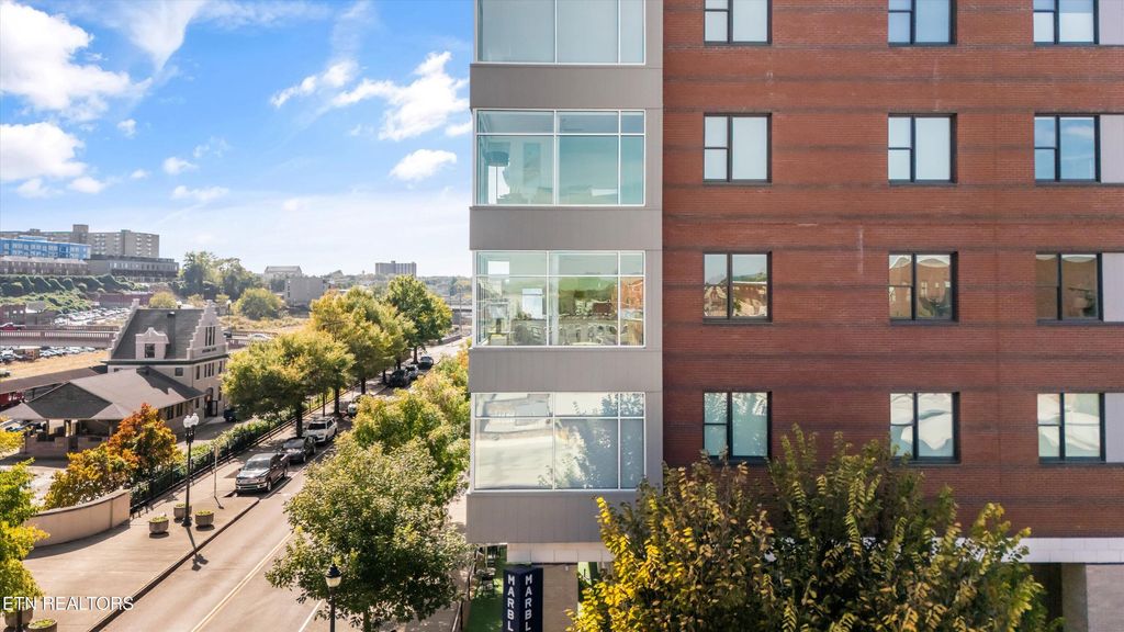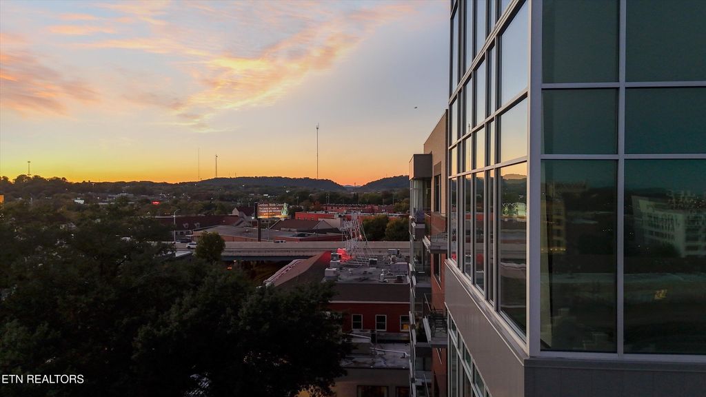 You do not want to miss this rare opportunity in Regas Square! This stunning corner residence offers 3 bedrooms and 3 full bathrooms in a south-facing, light-filled unit overlooking Downtown Knoxville with breathtaking mountain views and evening sunsets. The private balcony is perfect for enjoying downtown's energy, stadium fireworks, and the ever-changing skyline.