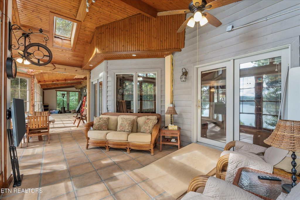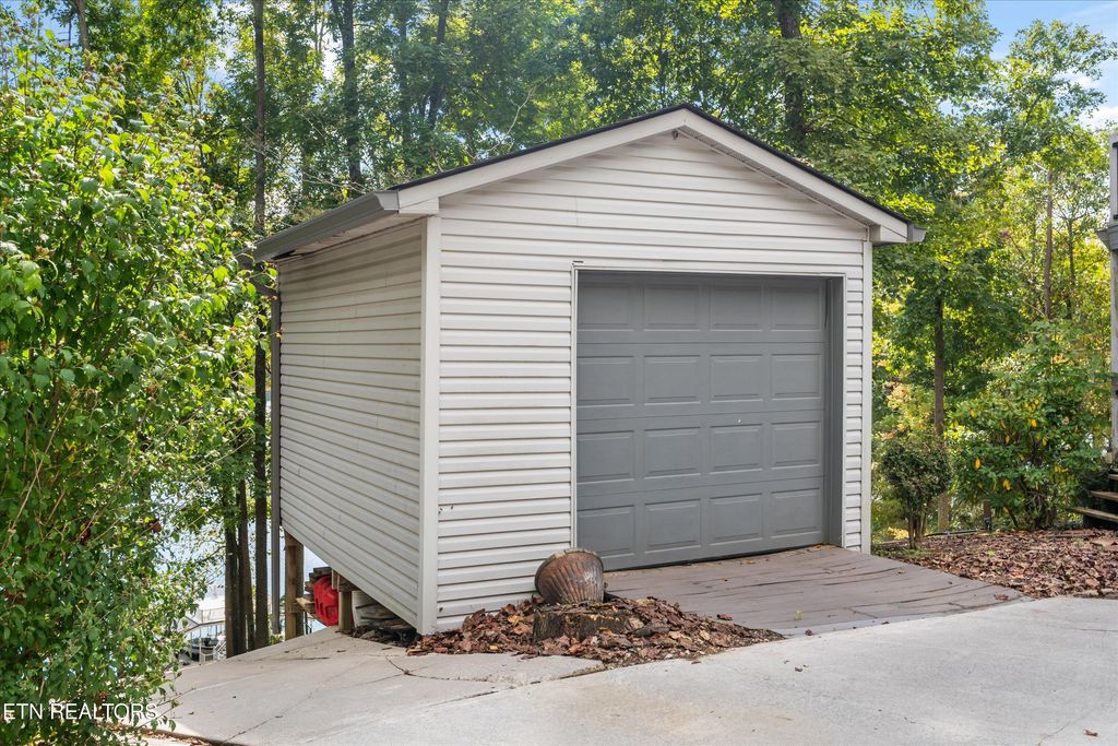 Take a look at this incredible home located on the Big Creek waters of Norris Lake. As you pull up to the home, you will see a circle drive with additional parking below where the garage and outbuilding are. As you walk inside, you are greeted with tongue and groove ceilings and an open floor plan. The kitchen is expansive and offers cherry cabinets, stainless steel appliances, solid surface countertops and overlooks the breakfast nook, dining area, and three seasons room. The main level offers three large bedrooms, an office or pantry area (laundry hook up available), and two full bathrooms. The three seasons room faces the lake to take advantage of the views year round. Downstairs, you will find a laundry room, two bedrooms and a bathroom, a two car garage and a bunk room or game room, with extra storage. There is a deck on the lower level to soak up those views. At the lower parking area is the extra storage building and a concrete path that takes you by the fire pit, directly to the water. To take full advantage of the lake, you have a two slip dock with lifts, and a party deck on top to entertain. At this home, you are right at point 6, which is a central location and incredible views, but has protection from the main channel wake. This home is handicap accessible on the main level. Whether you are looking for a second home or rental, this home has it all. Schedule your showing today! Buyer to do their own due diligence, including but not limited to, acreage, restrictions, square footage, etc.