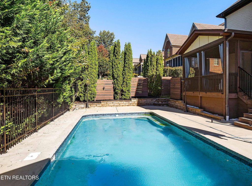 The outdoor space is equally impressive. Step outside to your private oasis featuring a resort-style pool surrounded by lush landscaping and multiple areas for lounging, dining, and enjoying the Tennessee sunshine. Whether hosting a summer party or relaxing in peace, this backyard delivers an unforgettable setting.