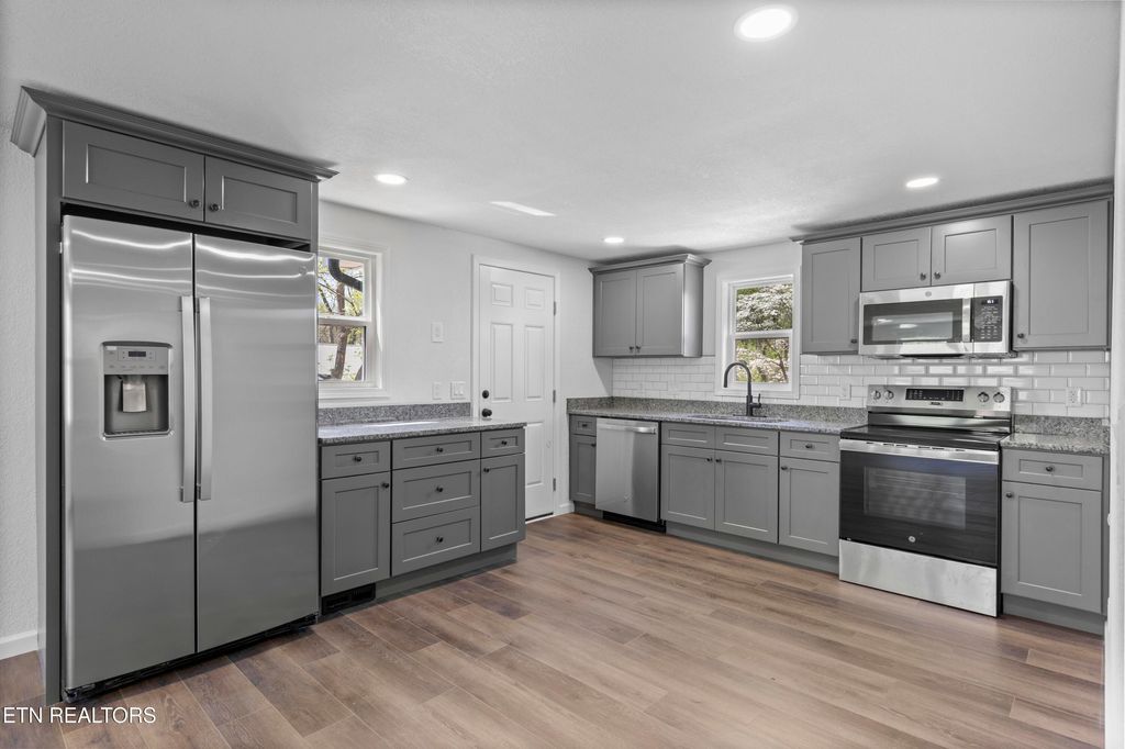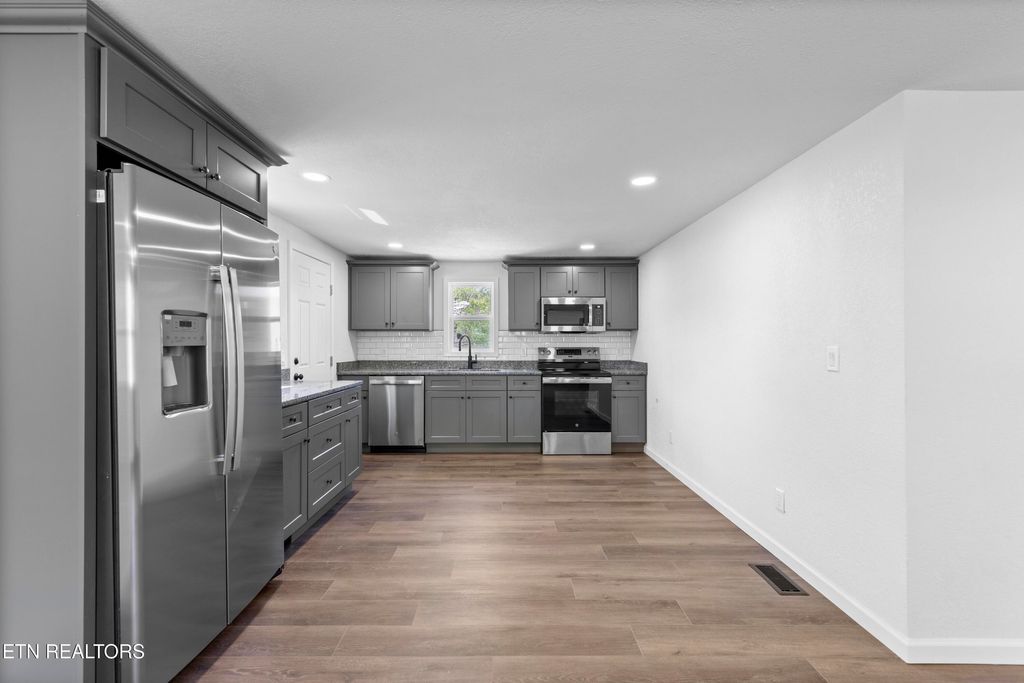 Sellers are relocating - make their move your opportunity! Don't miss this beautifully renovated home sitting proudly on a corner lot in the heart of LaFollette. This property has been completely transformed - taken down to the studs and rebuilt with quality craftsmanship throughout. No detail was overlooked: upgraded insulation and windows, brand-new roof, siding, porches, plumbing, electrical, HVAC, and more. Step inside and you'll love the open-concept layout and stylish LVP flooring that flows seamlessly throughout. The light-filled living room connects perfectly to a stunning all-new kitchen featuring solid oak cabinetry, granite countertops, and stainless steel appliances - ideal for both everyday living and entertaining.