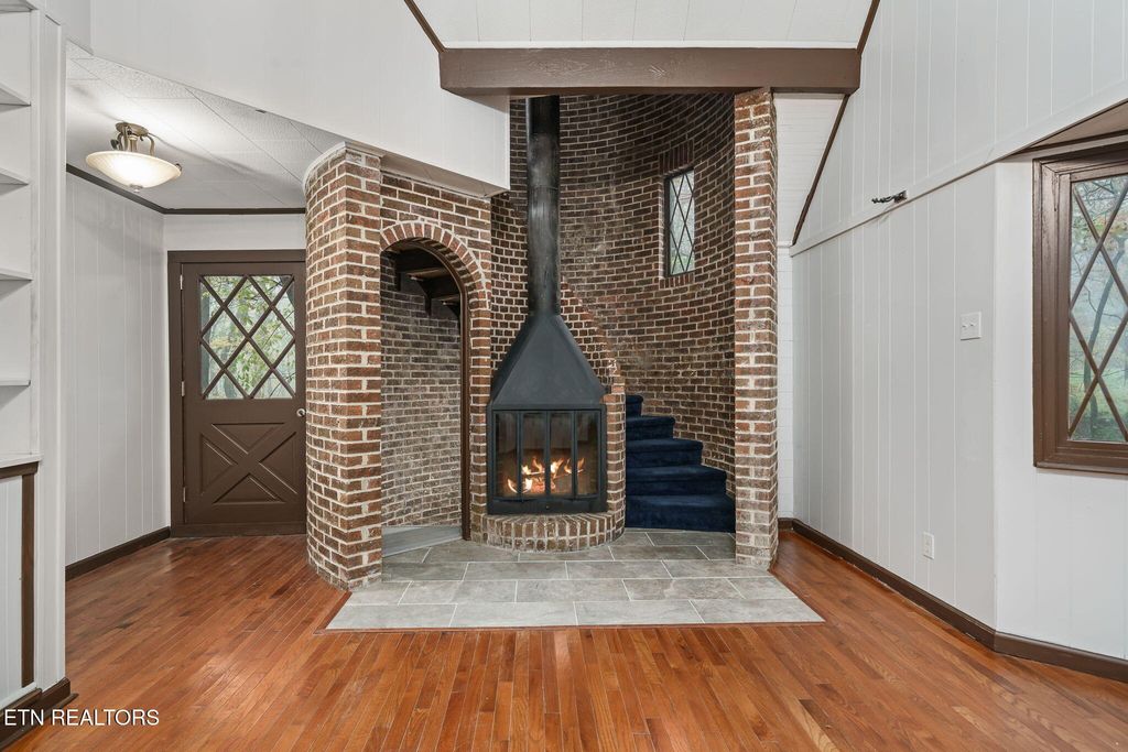 Step inside to a spacious living room with a vaulted ceiling, creating an open and inviting atmosphere. The home's distinctive architecture"”complete with brick accents, half-timber detailing, and castle-like character"”sets it apart from anything else on the market.