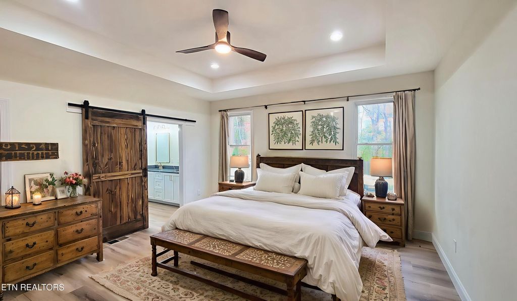 This 3-bedroom, 2-bathroom new construction residence delivers a refined balance of luxury, craftsmanship, and function. Every element was intentionally chosen to create a home that feels both elevated, classic, and enduring. The property features mature trees, a two-car garage with dedicated storage space at the lower level, a covered back deck, and 10-foot ceilings throughout with architectural upgrades that require precision-engineered trusses and a higher construction cost that's evident the moment you walk in. Both the front and rear entry doors are 8 feet tall, adding scale and presence, while the covered deck's 10-foot ceiling enhances the open-air feel and creates a true outdoor extension of the living space. The shared living area blends warm neutral tones, brushed brass accents, and wide-plank Timber Creek flooring. Every fixture is deliberately placed to provide space for your own design preferences while maintaining defined, balanced zones throughout.