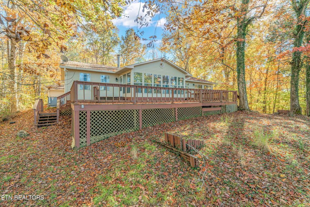 Over 2,300 sq ft on 3.5 private wooded acres with Emory River views! This spacious, handicap-accessible home features 3 bedrooms, 3 full baths, and a split-bedroom layout with 2 primary suites. 1 suite includes French doors, oversized spa tub, and sliding doors to the deck. Enjoy a large open living area, real hardwood floors, upgraded kitchen with Italian marble countertops and island (refrigerator does not convey), and dedicated office/study. Relax in the screened-in sunroom or on the expansive deck with lake views. Additional features include: 1-car garage with attached carport, ADT security system, Wood-burning stove on a beautiful stone wall, Whole-house water filtration system, Encapsulated crawlspace with professional dehumidifier and transferable warranty,Washer and dryer convey, Natural gas. This unique property offers privacy, space, and comfort just minutes from town. Public lake access and boat launch available. Fridge, deep freeze & desk DO NOT CONVEY.