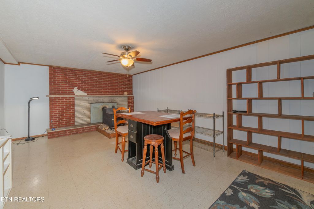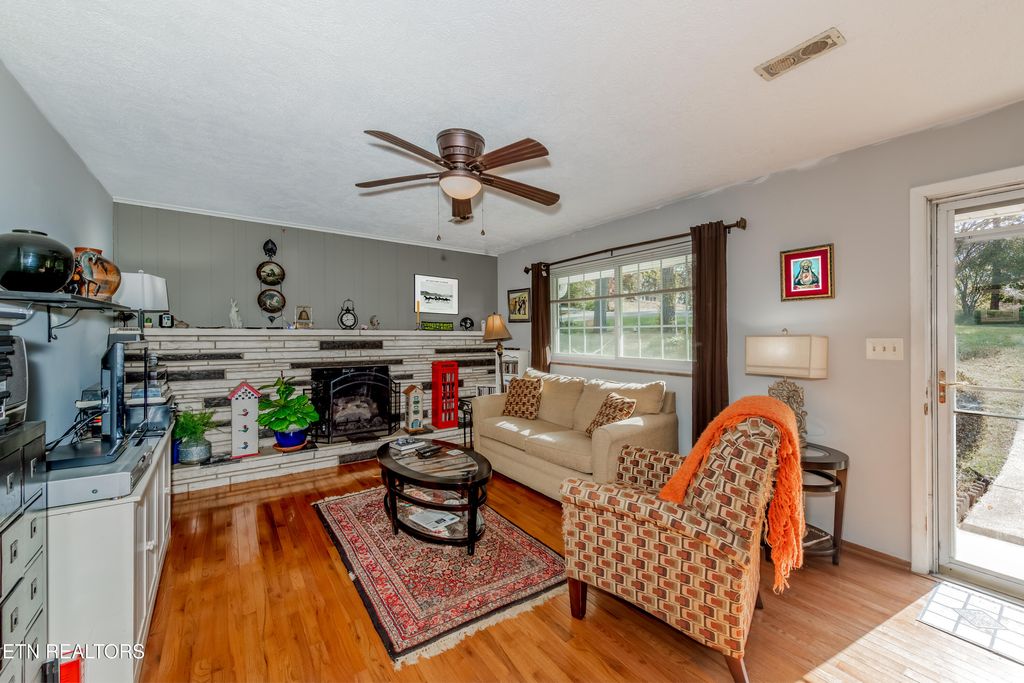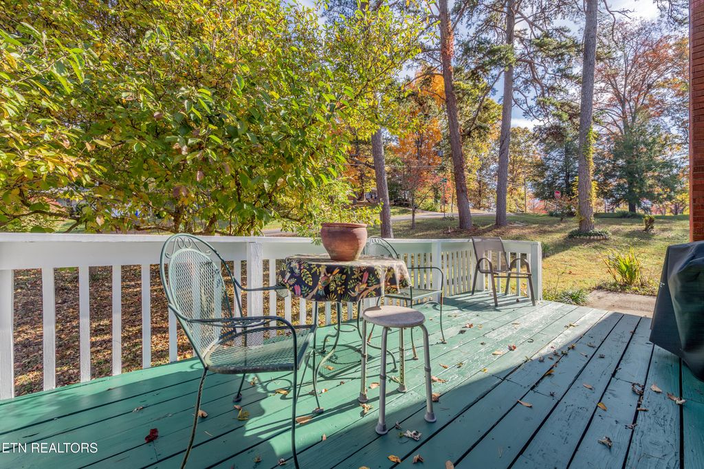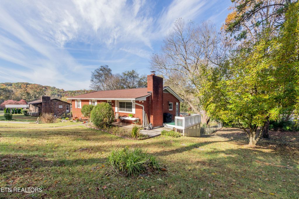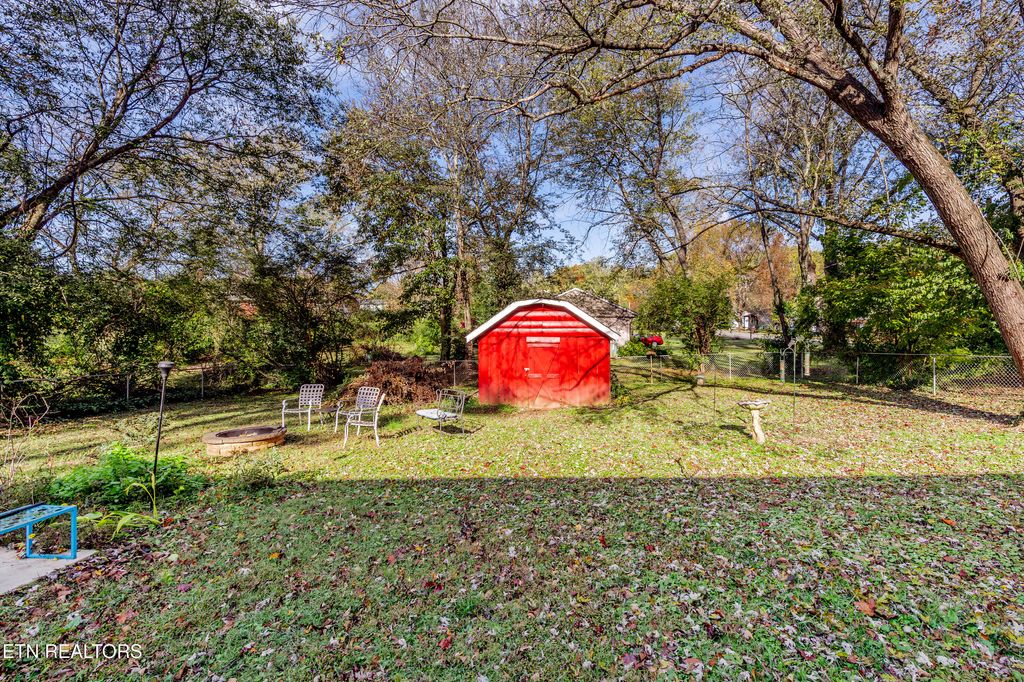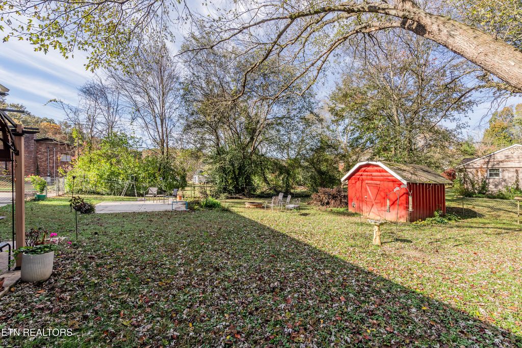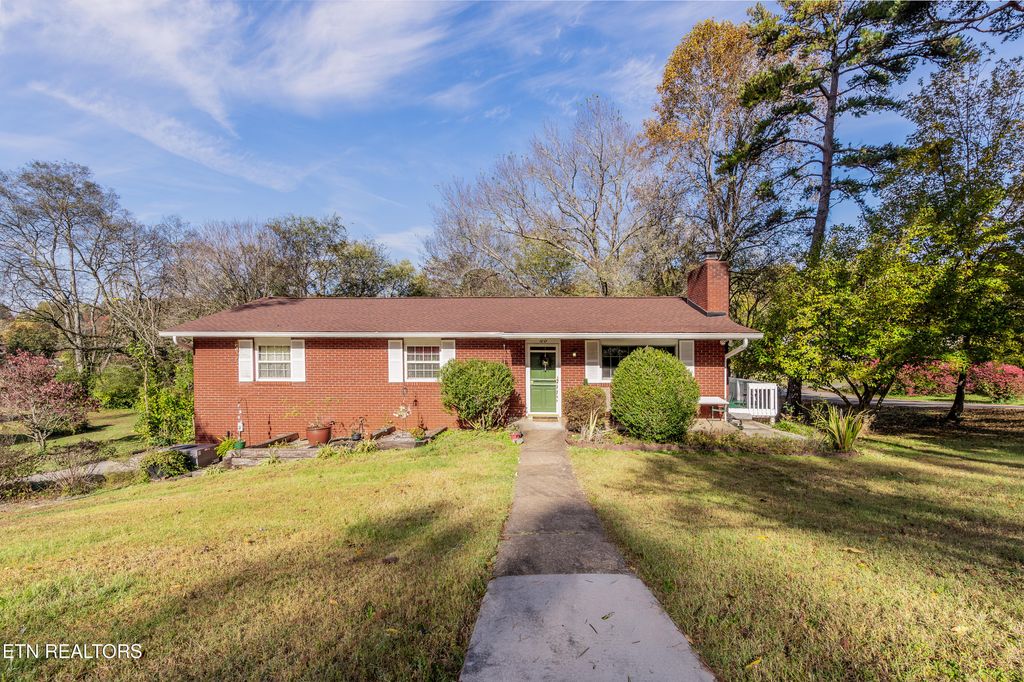 Really cool, all brick basement rancher within 10 minutes of downtown Knoxville. Situated on a corner lot with a level fenced back yard with storage shed and sun-shade canopy along with a fire pit. Main level you'll find 3 Bedrooms and 2 baths, living room with lovely stone fireplace with gas logs, a large kitchen and formal dining area that leads to a cozy deck. Downstairs is a perfect space for a family room, man-cave, home gym or playroom with a large wood burning stove. There is a 4th bedroom that can also be a flex room, as well as laundry and bathroom with a walk-in shower. Updates include: roof, gutters, soffits 1.5 years, garage doors, primary bathroom, downstairs shower, HVAC 7 years, additional concrete pad on driveway, some electrical and plumbing updates, septic pumped 2 years ago, water heater 1 year, kitchen updated 3 years, most windows (Renewal By Anderson). Oversized 2 car garage with room for workshop area. Great neighborhood, currently zoned for Bonny Kate. (Septic is rated for 3 bedrooms) Sold AS-IS but is in good shape!
