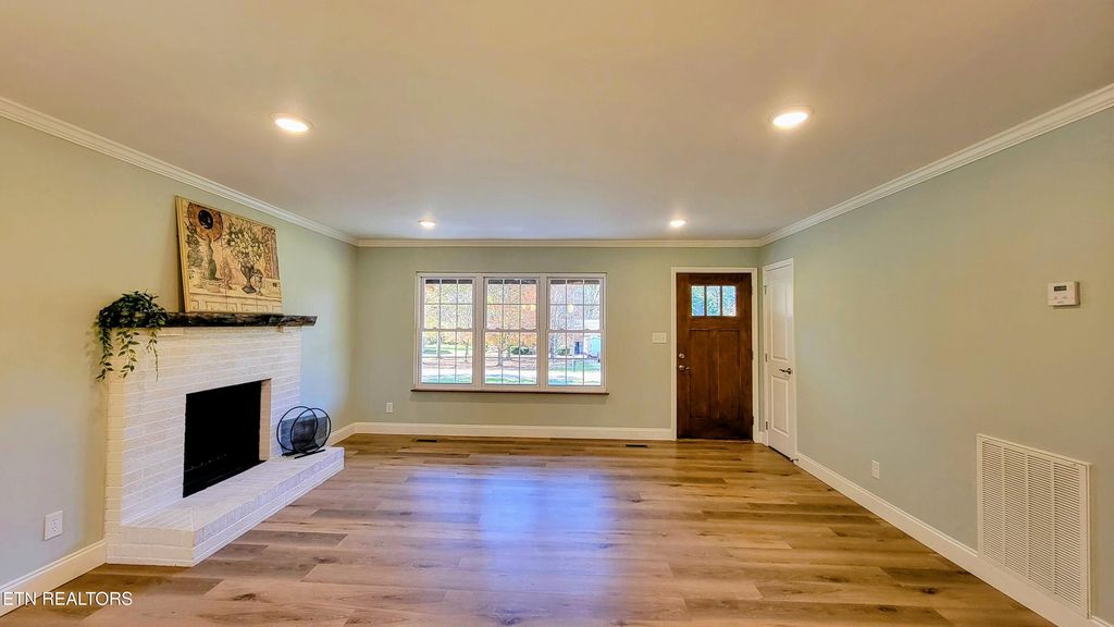 Beautifully updated 3-bedroom, 2-bath brick rancher on a spacious .58-acre lot! This 1,304 sq ft home, originally built in 1960, has been completely refreshed with modern finishes throughout. Step inside to an open-concept living area featuring new flooring, elegant crown molding, and a cozy wood-burning fireplace. The stunning kitchen boasts quartz countertops, and island, with all-new stainless steel appliances.