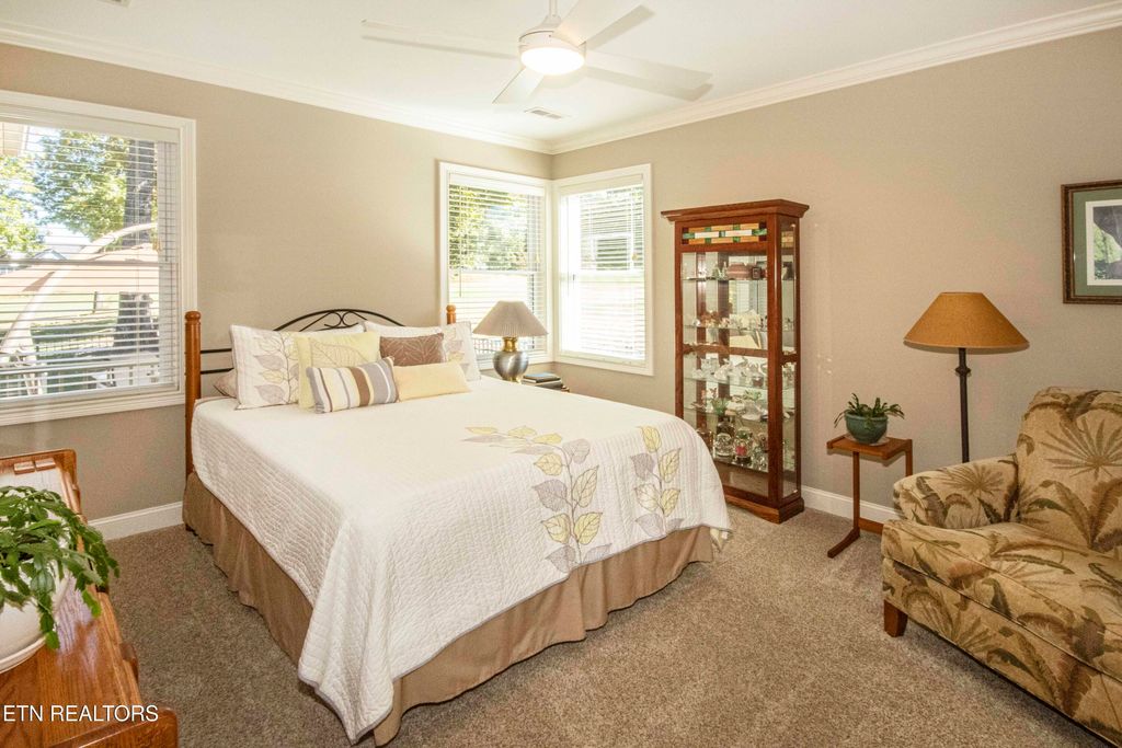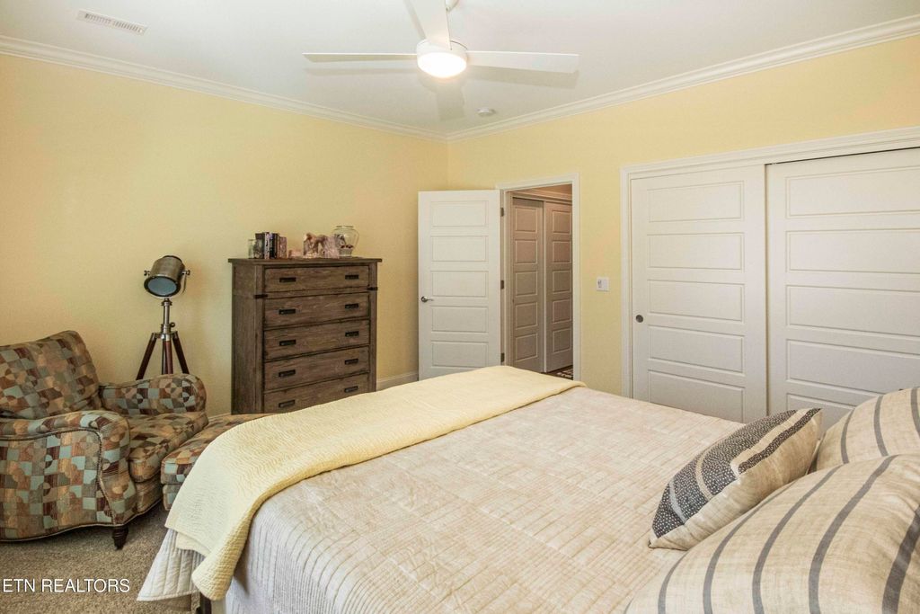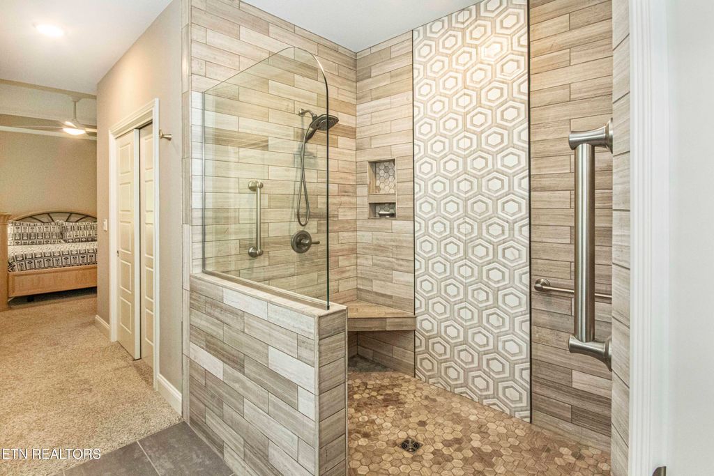The main-level suite offers a spacious layout, his-and-hers closets, and a beautifully finished bath that includes dual vanities, a curb-less walk-in shower, custom tile work, separate climate control and large storage closets designed for both style and accessibility. Two Additional bedrooms and a bonus suite with a full bath offer flexibility for guests and hobbies. Hot water recirculating system.