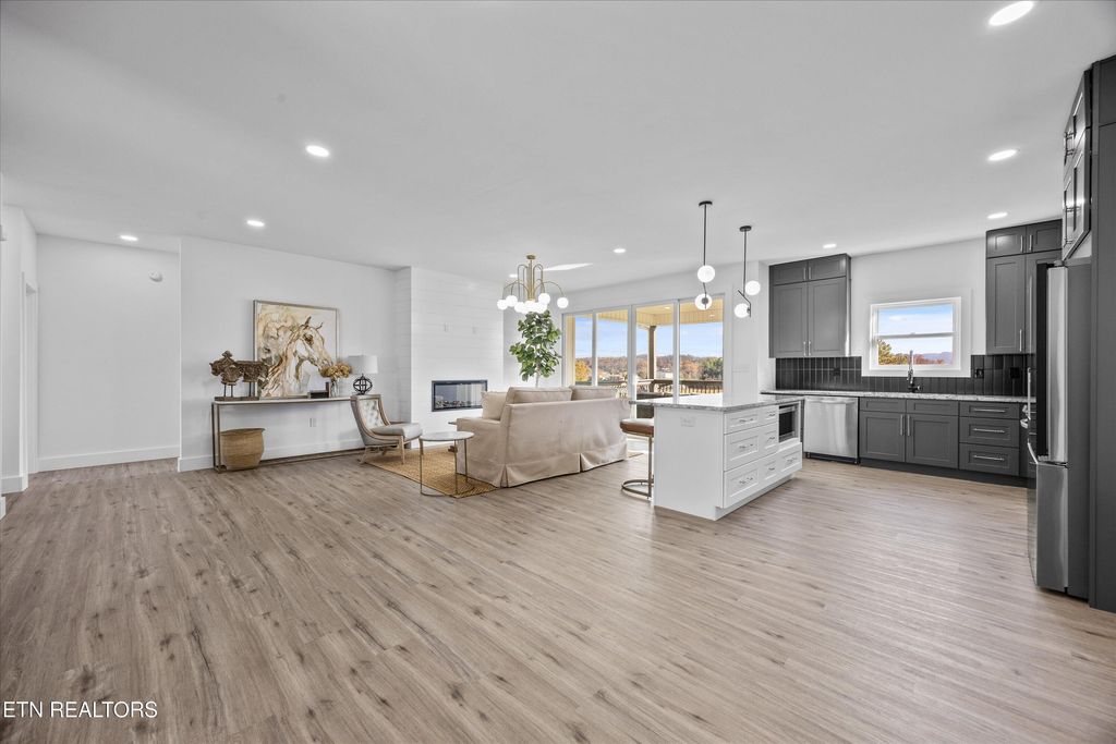 New Construction | Lake & Mountain Views | Dandridge, TN. Experience stunning views of Douglas Lake and Mt. LeConte from this newly built luxury home in Dandridge. Thoughtfully designed with high-end finishes, this open-concept plan features a spacious great room with a fireplace and expansive windows framing the lake and mountain backdrop. The chef's kitchen offers quartz countertops, custom cabinetry, and a large island perfect for entertaining. The main-level primary suite includes a spa-inspired bath with a tiled walk-in shower and dual vanities. Enjoy covered outdoor living areas, beautiful craftsmanship, and convenient access to marinas, restaurants, and historic downtown Dandridge"”luxury lake living at its best.