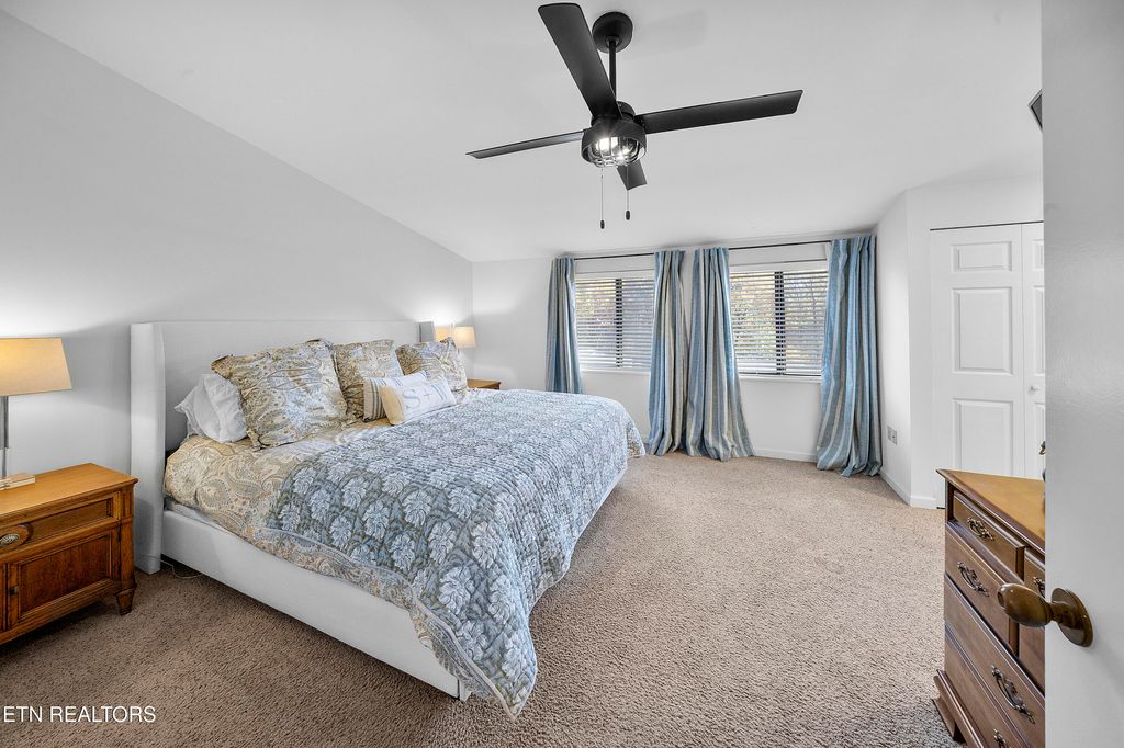 This beautifully updated condo in Cherokee Bluff offers fresh exterior upgrades with new Hardie Board siding (2023) and a new roof (2024), plus stylish interior updates throughout. Enjoy new kitchen tile flooring, stainless steel appliances, and completely renovated bathrooms with modern finishes. The main living area features wood floors, neutral paint, and plenty of natural light. A fireplace and Juliet balcony with Trex decking add warmth and charm. The kitchen connects to a cozy den with access to a private back patio, perfect for relaxing or entertaining. Upstairs, the primary suite offers a large closest and a spa-like bath with a soaking tub and tiled shower. Two additional bedrooms share an updated full bath. Located in a gated community with a pool, fitness center, clubhouse, and beautiful views, this condo is close to UT, downtown Knoxville, an all the city has to offer!