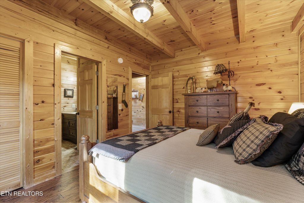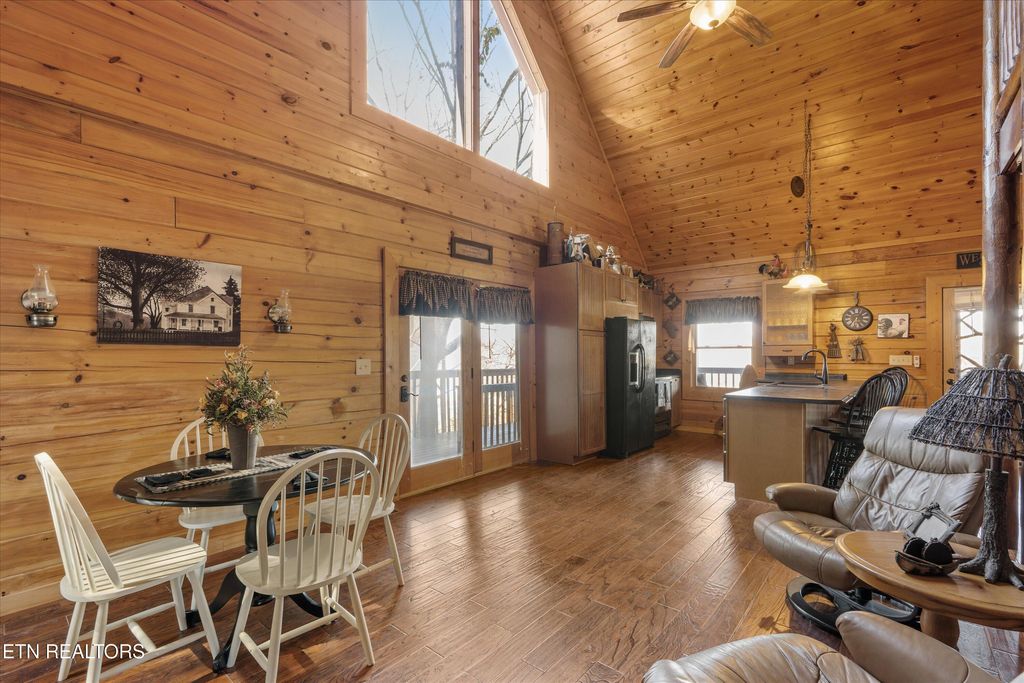 Welcome to 2026 Bill Flagle Way "” a pristine log-style home offering Douglas Lake access and scenic mountain vistas within the established Douglas Lake Resort community. This well-loved property has been meticulously cared for and stands apart from the typical ''turn-and-burn'' cabins found throughout the Smokies. Inside, you'll find approximately 2,037 sq ft of finished living space with three full baths, a versatile loft, and an expansive lower-level suite previously used as a primary bedroom but perfectly suited for a home theater, game room, or guest retreat. The main level showcases an open-concept layout with vaulted ceilings, a wood-burning fireplace, and natural wood finishes that highlight authentic craftsmanship. A wrap-around covered porch expands outdoor living space to enjoy sunrises and seasonal lake views.