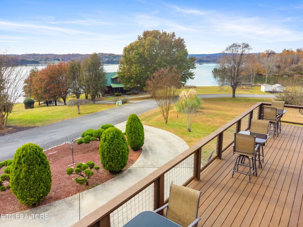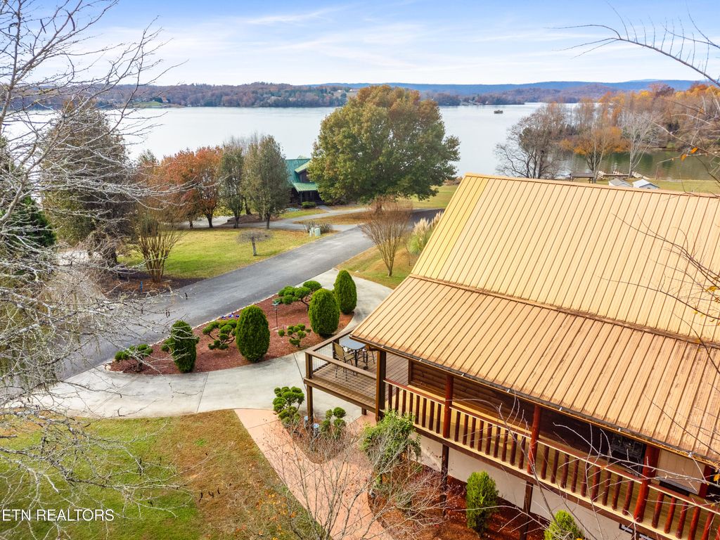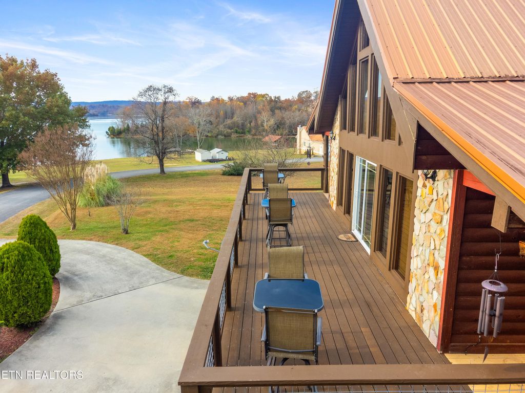 This is a custom-built Chalet Log siding Home featuring panoramic lake views and beautiful sunsets. The home is situated on a level 1-acre lot with mature trees in the back and gorgeous landscaping. Key features include cathedral tongue-in-groove ceilings, all hardwood and tile floors, and a stone fireplace with gas logs and every room has a vast lake view. The bedrooms consist of 3 BR/2.5 Baths. Main level has 2 BR /1 BA. Upper level has a loft + a master suite with private bath. The exterior boasts fabulous wrap-around decking with front and side covered porches. The finished basement is a great entertainment space, including a mud room with laundry, a large rec room, a gas stove, and a wonderful bar/entertainment area. The property also includes a large one-car garage with a workshop.