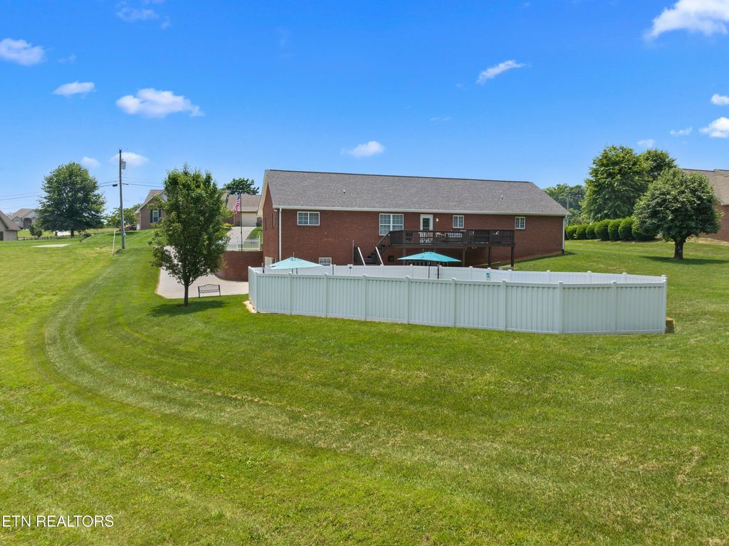 Discover this beautiful brick rancher nestled on 2 spacious lots in the county. This home offers the perfect blend of space and convenience. This well maintained home offers 3 bedrooms and 3 full baths. Enjoy an inground pool with a privacy fence for summertime entertaining. A country front porch is a welcoming feature for your guests. A main level garage is inviting for ease of entry. The lower level offers a den with a fireplace for a great overflow area. You also enjoy a 2 car lower level garage.