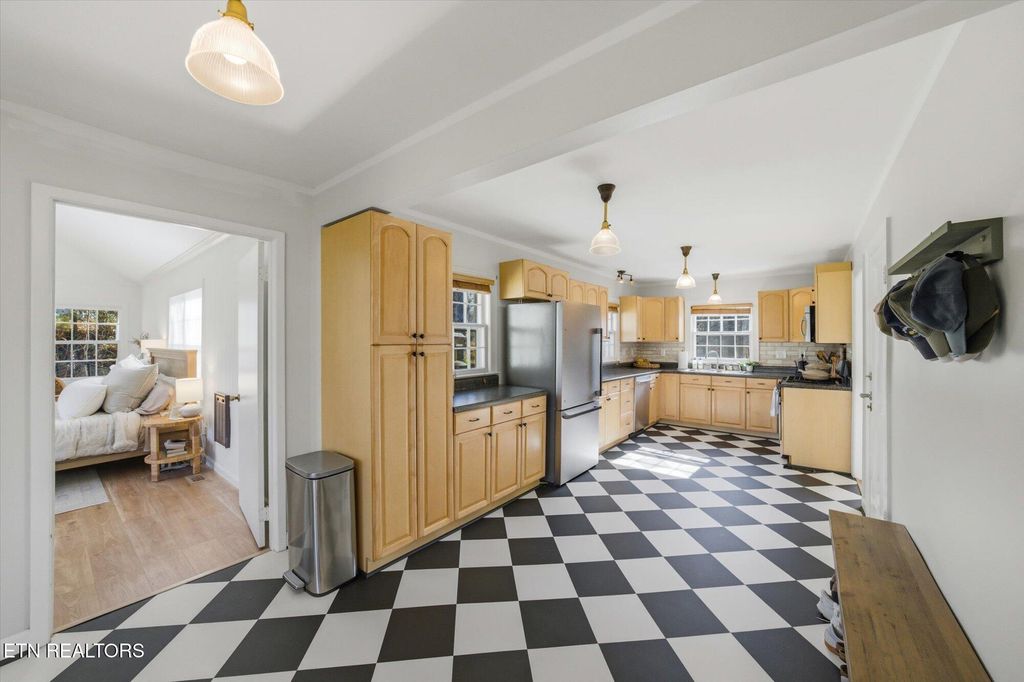 Step into a charming slice of history in Holston Hills with this enchanting property featuring two lots totaling a near acre! This captivating Tudor-style cottage evokes the elegance of timeless details rarely found in contemporary construction: authentic hardwood floors, solid wood doors adorned with glass knobs, and graceful arched entryways. The professionally designed landscape includes an irrigation system that keeps the grounds stunning year-round. Step into the charming living room featuring a gas log fireplace and natural light throughout. Pass through the dedicated dining room into a beautifully updated kitchen with plenty of storage and countertop space! The spacious family room with newly vaulted ceilings currently serves as the primary bedroom and features a hidden entrance to a basement studio apartment. The basement also has its own exterior access and a full bathroom "”ideal for guests or short term rental income! Step out onto the private covered back deck overlooking your property and you will feel like you are somewhere tucked in the mountains, not just minutes away from Downtown Knoxville or Holston Hills Country Club! As a bonus, the adjoining vacant lot is included with the sale and can be reached via Vee Road. Plans for an addition to create an en-suite bathroom off the primary bedroom to be provided and will be in the house for your viewing. The large garage offers plenty of storage. Holston Hills Country Club membership offers a pool, golf, fitness facility, community events, dining options, and more - also the host course for the Knoxville Open!