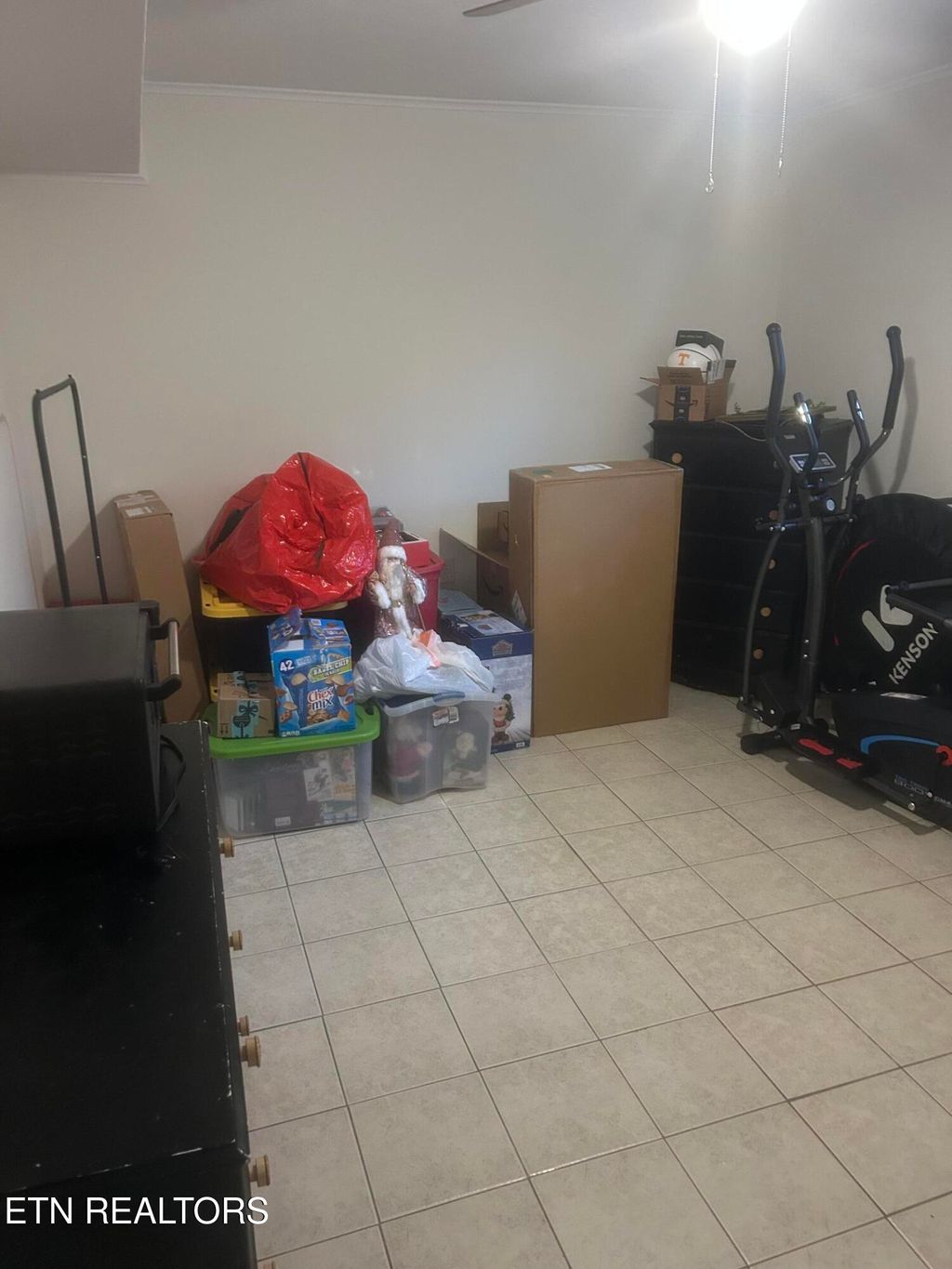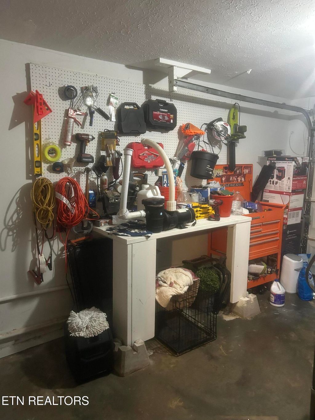 LOWER LEVEL : TILE FLOORING AND A LARGE OPEN AREA IDEAL FOR AN OFFICE, REC ROOM, OR A SECOND FAMILY ROOM,ADDITIONAL STORAGE ROOM, GARAGE INCLUDES A WORK BENCH AND DEDICATED WORKSPACE.