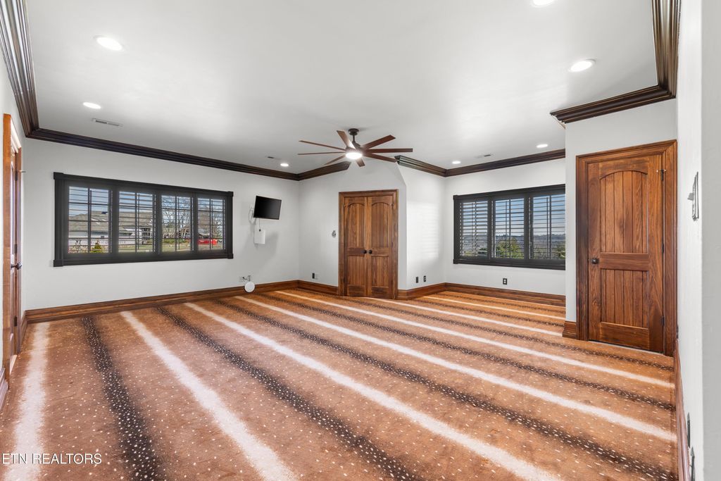 The second floor has a thoughtful design consisting of an additional primary suite, two bedrooms and a large bonus room with expansive storage areas. Each room hosts its own bathroom for privacy, including a full bathroom on-suite attached to the open concept bonus space. The primary bedroom has an impressive bathroom with a jet tub, two separate vanities, and a large walk-in closet with such intentional and well considered closet organization. The third floor is a large open concept space perfect for a craft room, private office, or quiet retreat. It connects to large attic storage while remaining a hideaway room that closes off from the rest of the home with its private entrance.