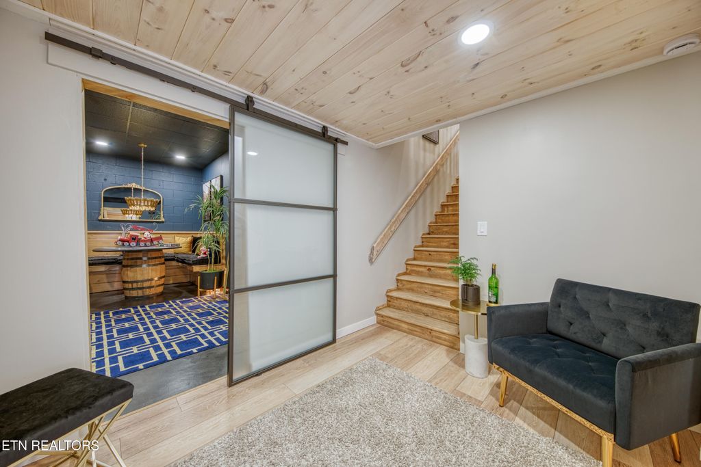A Hidden Gem in the Woods"”Luxury, Privacy, and Style Just Minutes from Downtown Sevierville! Tucked among the trees, this sophisticated mountain retreat feels like you're living in a modern treehouse"”peaceful, private, and surrounded by nature, yet only minutes from all the conveniences of downtown Sevierville. From the moment you arrive, this home makes a statement. Greet your guests at the front entry and whisk them upstairs in your private elevator to the light-filled main level, where open spaces and upscale finishes set the tone for effortless mountain living. Step into the inviting living room, anchored by a stunning see-through gas fireplace that connects warmth and ambiance throughout the main living areas. Windows bathe the home in natural light, framing tranquil wooded views that shift beautifully with the seasons. Just beyond the sliders, discover a bright sunroom"”perfect for morning coffee, quiet reading, or simply soaking in the serenity of your surroundings. The spacious eat-in kitchen is designed for both style and function, with plenty of workspace, and access to the expansive deck. A covered section makes outdoor dining comfortable year-round, while the open deck invites you to enjoy the stars or unwind in the private hot tub after a long day. Whether you're entertaining friends or enjoying a quiet evening, this space truly defines indoor-outdoor living at its best. Two lovely guest bedrooms and a well-appointed hall bath, along with a private primary suite offering a walk-in closet and spa-style bathroom with a custom walk-in shower. Every corner reflects thoughtful craftsmanship and understated elegance. Downstairs, the fun continues! The home theater room sets the stage for movie nights, while an adjacent game or gathering area is ideal for cards, board games, or late-night snacks. There's also a full bath and a bonus bunk room, perfect for family or guests. And for those who love to unwind in their own space, the large rec room"”currently used as a man cave"”offers endless flexibility for hobbies, fitness, or future expansion. This home's comfort goes far beyond what meets the eye. Behind the scenes, you'll appreciate the high-end HVAC system, advanced water filtration setup, and quality construction throughout. Every feature has been chosen to enhance your lifestyle with ease, comfort, and reliability. This one-of-a-kind property blends modern mountain luxury with total privacy, creating a place that's as inviting to entertain in as it is to escape to. Come experience this exceptional home in person"”schedule your private showing today and see why there's truly nothing else like it in Sevierville!