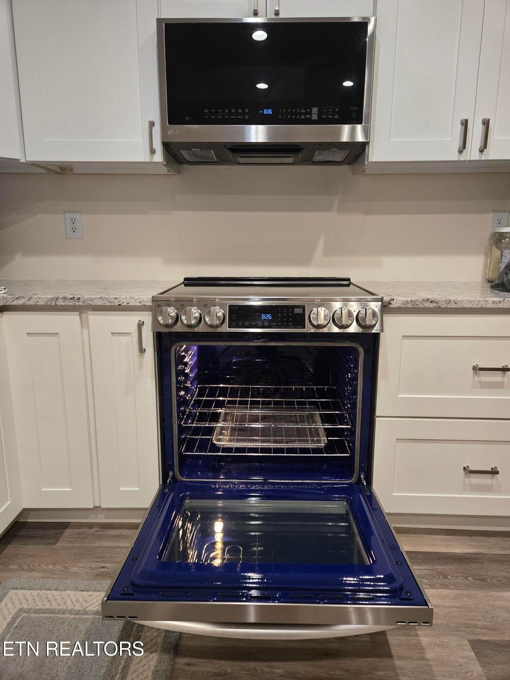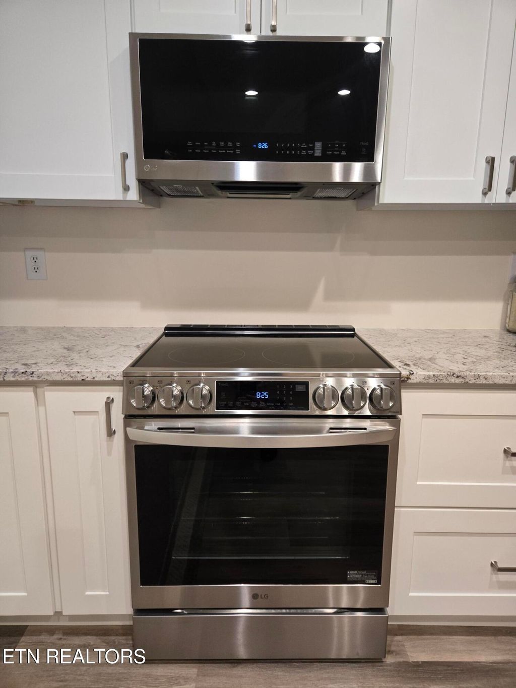 Inside, you'll find completely updated bathrooms, new white shaker-style kitchen cabinets, custom granite countertops, and matching stainless-steel appliances. The plumbing has been upgraded to PEX, with new faucets throughout. Fresh interior wall paint, new doors, and new flooring elevate the home's clean, modern feel.Windows feature white 2-inch wood blinds for privacy and style. A brand-new washing machine and the dryer remain. New smoke detectors have been installed throughout.