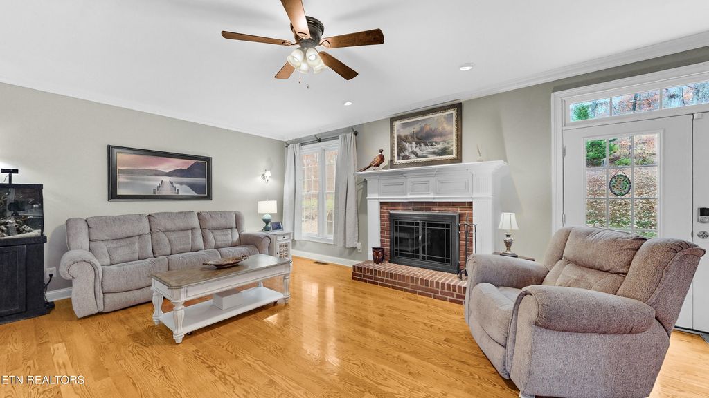 Nestled on a peaceful street, this expansive brick home on Oak Glade Lane offers a serene, private escape in Fountain City. A long driveway welcomes you into a tranquil setting where mature trees rustle gently.