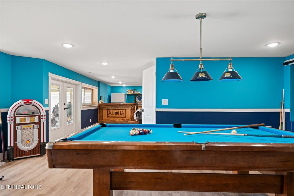 Upstairs, you'll find a secluded guest suite with a full bath"”ideal for visiting family or a private office. The fully finished walk-out basement is a dream for entertainers and hobbyists alike, featuring two additional flex rooms, a half bath, and a handcrafted Hawaiian wood bar that adds unique character and warmth. French doors open to a covered patio where you'll find a private hot tub and built-in gas grill"”all with the lake as your backdrop.