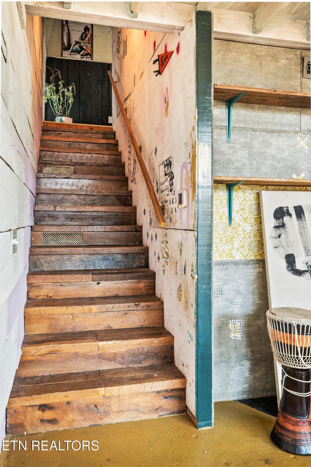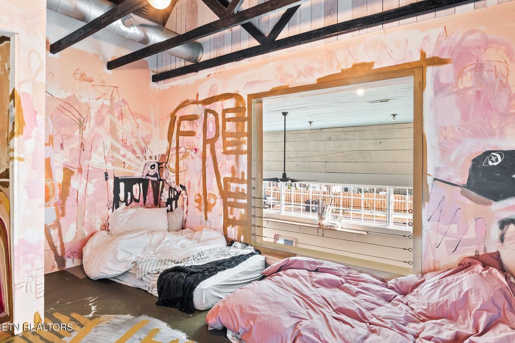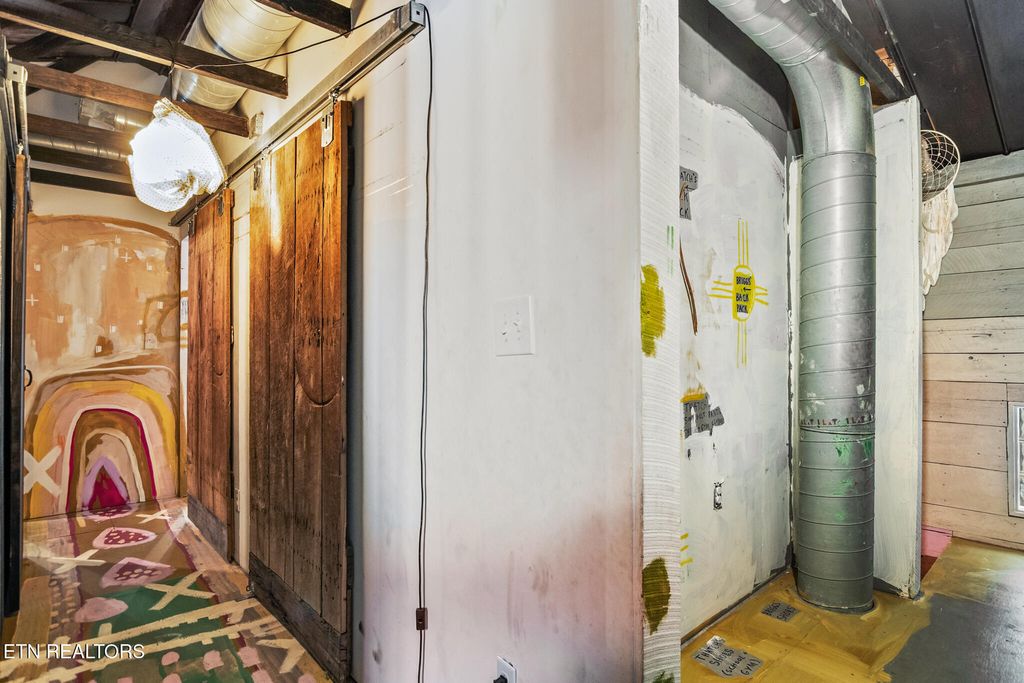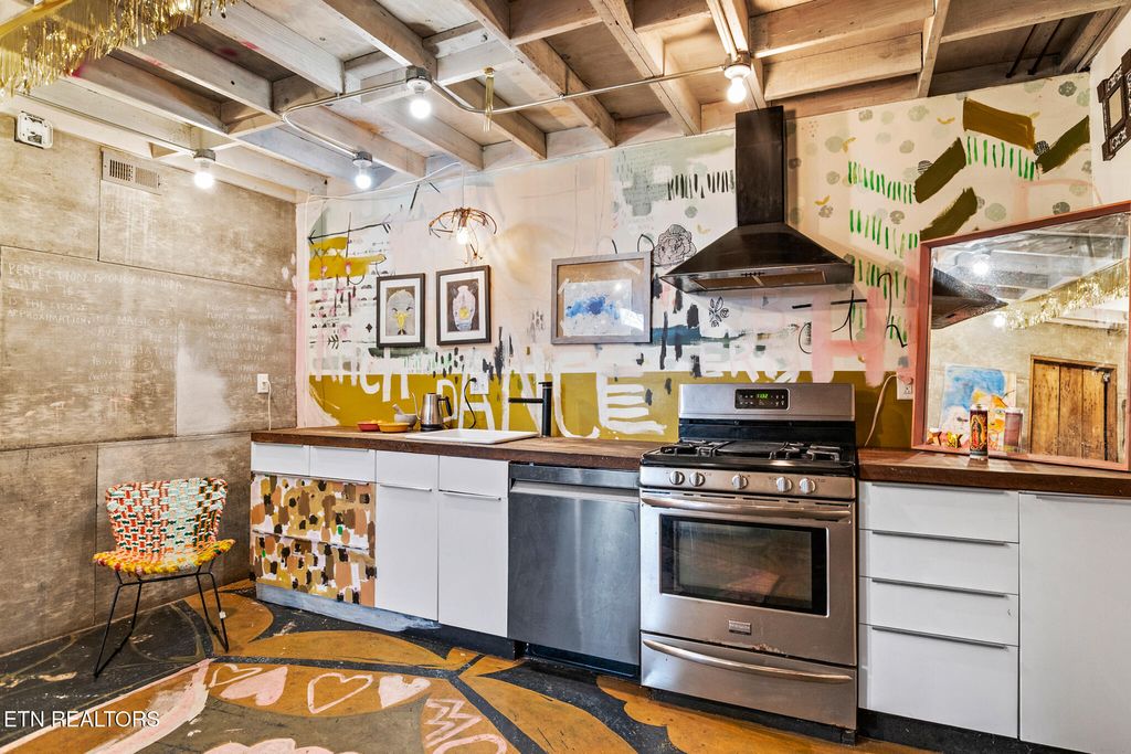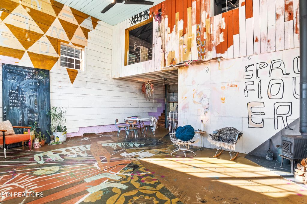 Throughout the home, selected interior surfaces include hand-painted murals, expressions, and artistic finishes by the current owner, a local Knoxville artist. These elements celebrate the property's creative history and can be preserved or repainted to suit the next owner's vision.