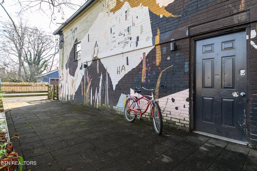 Set on a corner lot with a fully fenced yard and a mature old-growth maple, the property features a side patio and a prominent exterior mural by Knoxville artist Ashley Dawn Addair"”an installation that conveys with the home. A vintage 1966 Road Runner camper is also included.