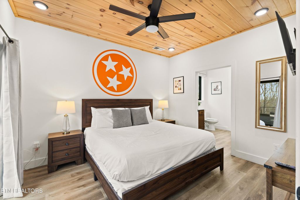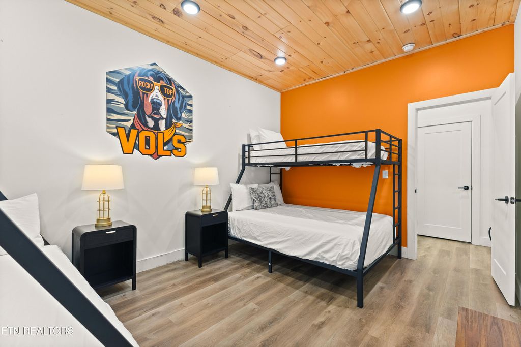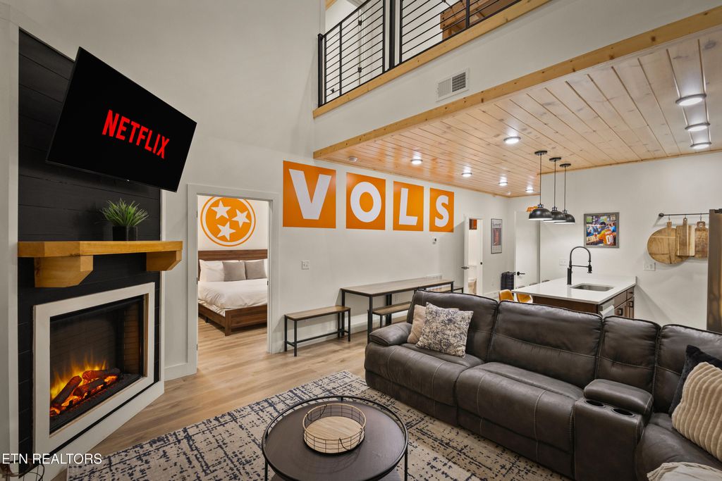 Impressive 4-bedroom, 5-bathroom fully turnkey cabin featuring a private indoor pool, located in the sought-after Lodges at Remont subdivision. This cabin showcases a University of Tennessee-inspired design, offering a fun, game-day-ready atmosphere that resonates with Smoky Mountain visitors and Vols fans alike.