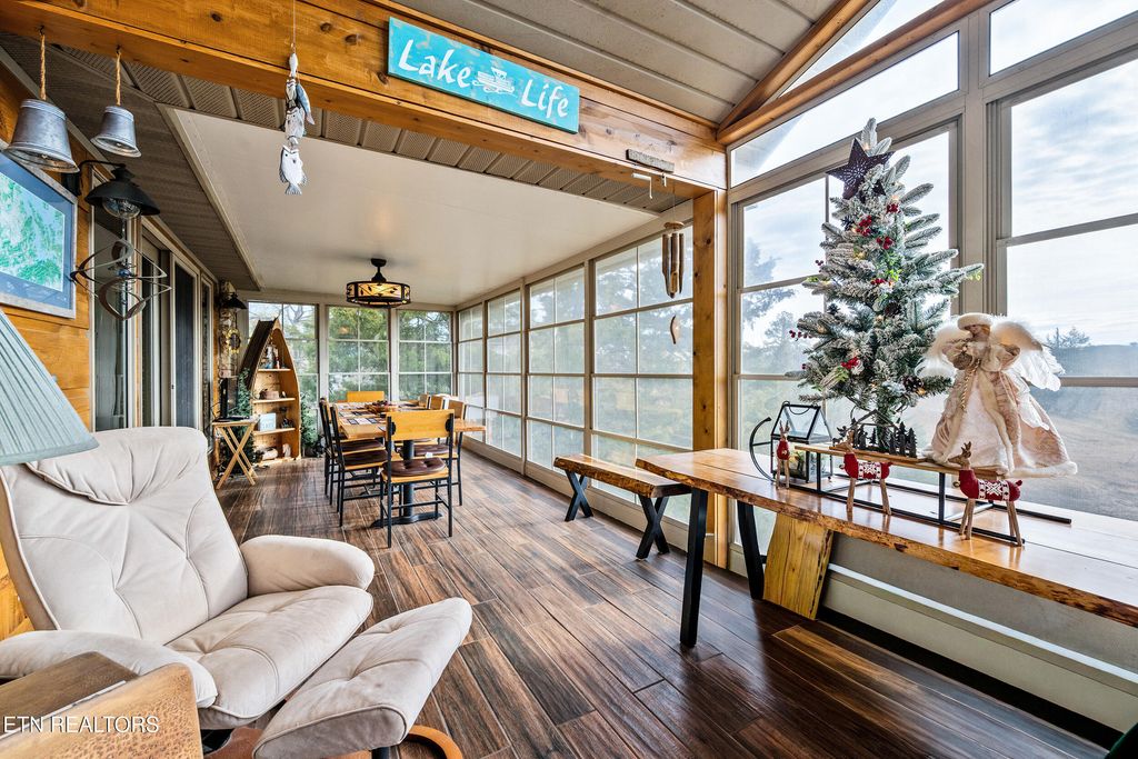 Luxury lakefront living at its finest! This stunning home sits on 4.03 acres on deep water Douglas Lake in one of the early-filling inlets with a private dock. Enjoy beautiful landscaping, a peaceful stone waterfall, and a fruiting fig tree that frame this serene setting. Inside, find a bright, open layout perfect for entertaining, featuring a spacious eat-in kitchen with double ovens and large pantry, a living room with gas fireplace, and a 4-seasons sunroom overlooking the lake and mountains. Split-bedroom design offers privacy, with a main suite featuring French doors to the sunroom, dual vanities, walk-in shower, and laundry access. The walkout basement provides incredible flexibility "” a rec room, additional bedroom, or second living area. This area is complete with a full bath and french doors opening to a private patio. There's even a one-car garage on this level, perfect for storing lake gear or additional vehicles. Five total garage spaces, including a detached ''barn'' with loft"”ideal for an office or guest suite. Minutes to shopping, dining, and schools. Includes Pontoon & trailer, all aluminum dock with slide, table & chairs, kayaks, paddle boards, and swim mat. Don't wait "” homes like this on Douglas Lake are rare and highly sought after. Schedule your private showing today and experience the beauty, space, and serenity that make this one-of-a-kind lake home truly priceless.
