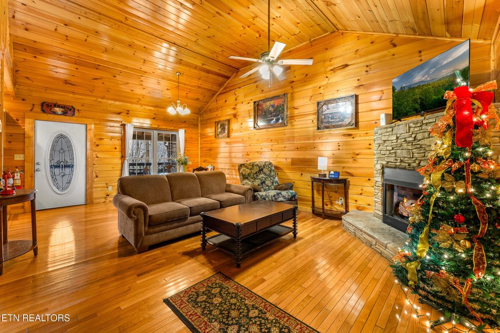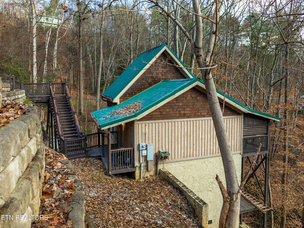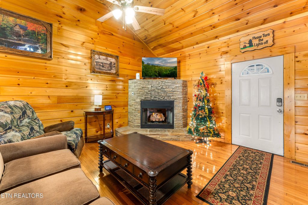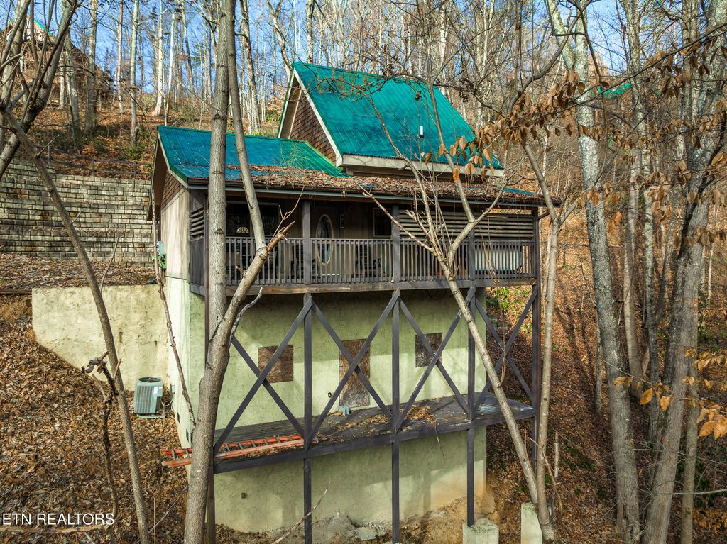 Dreamy little chalet in the woods! Savor peaceful Smoky Mountain comfort in this delightful 1 Bed, 1 Bath chalet boasting a private mountain setting close to Gatlinburg's top attractions. Step inside to find warm woods and soaring cathedral ceilings that harmonize a balanced aesthetic of rustic charm and modern comfort. A cozy gas fireplace tucks itself into a corner of the living room, sharing the warmth of gently flickering flames as you kick back to relax. The fully equipped kitchen is designed for everyday life-- practically outfitted in a layout that keeps everything you need readily at hand, whether whipping up movie night snacks or mealtime delights to serve up in the adjacent dining area. Steps away is the laundry room, keeping all essentials close at hand. The primary bedroom and bathroom are located on the main floor, while further sleeping accommodations in the loft provide space for everyone, complete with an in-room jetted soaking tub. A lovely, covered deck with hot tub provides a secluded destination with partial mountain views. If you are looking for the option of a little extra space, this exceptional mountain retreat offers expansion possibilities with unfinished square footage on a lower level that could be converted into additional living space. The location is second to none: mere minutes to all the excitement in downtown Gatlinburg, while also conveniently close to Pigeon Forge attractions like Dollywood, dinner shows, theme museums and The Island at Pigeon Forge. A truly great STR opportunity or vacation home with serene privacy! Buyer to verify all information.