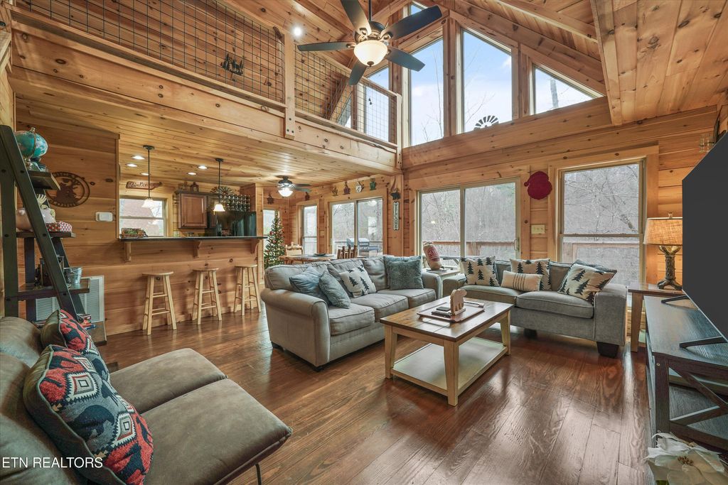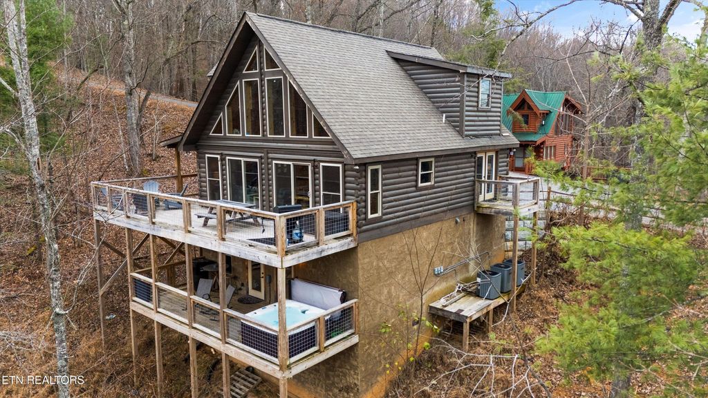 This beautifully crafted 4-bedroom, 4-bath log cabin is currently enrolled in a short-term rental program, offering immediate income potential in one of East Tennessee's most sought-after vacation markets. Offered fully furnished, this turnkey property is ready to generate revenue from day one while also serving as a perfect personal mountain escape.