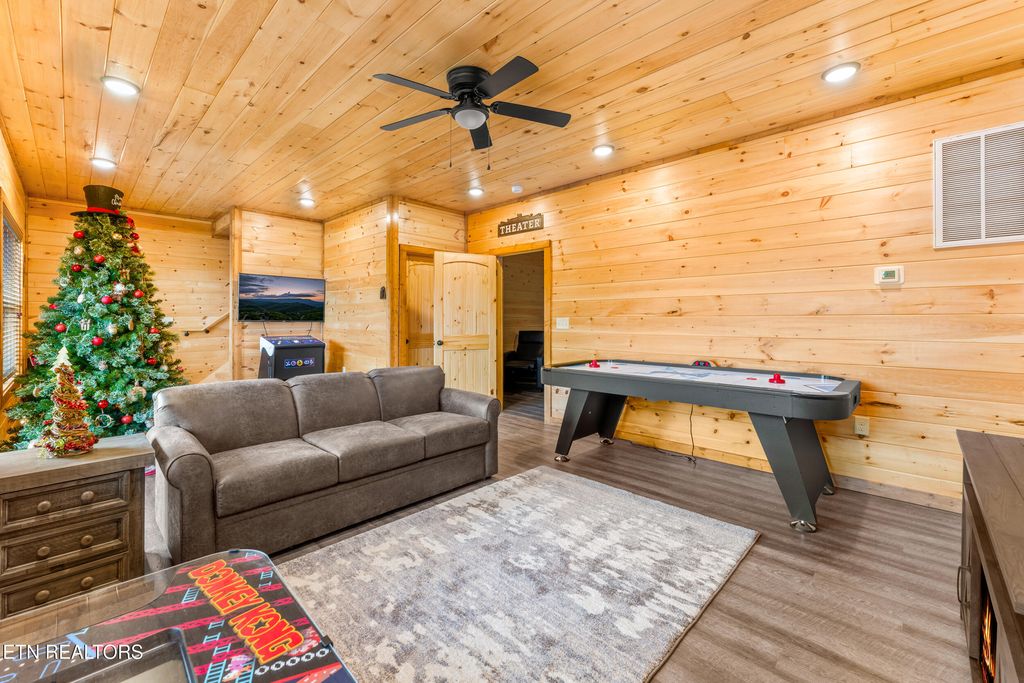 After a day of adventure, unwind by the gas-log fireplace, relax in the hot tub, or gather everyone for movie night in the private theater room. Stylish décor, modern finishes, and unforgettable views make this cabin equally impressive as a personal retreat or a high-performing investment.