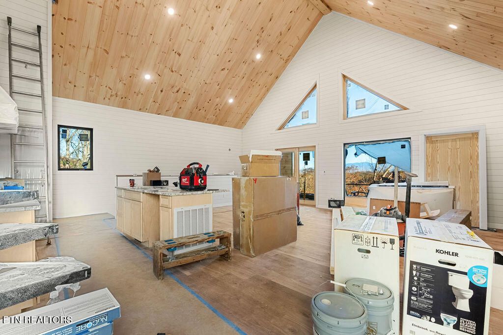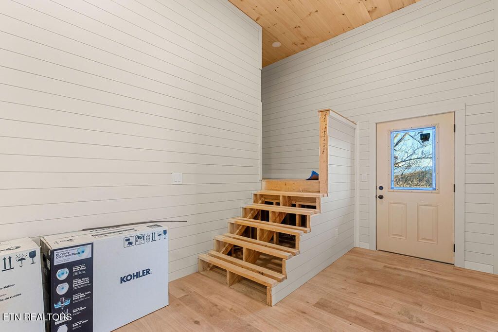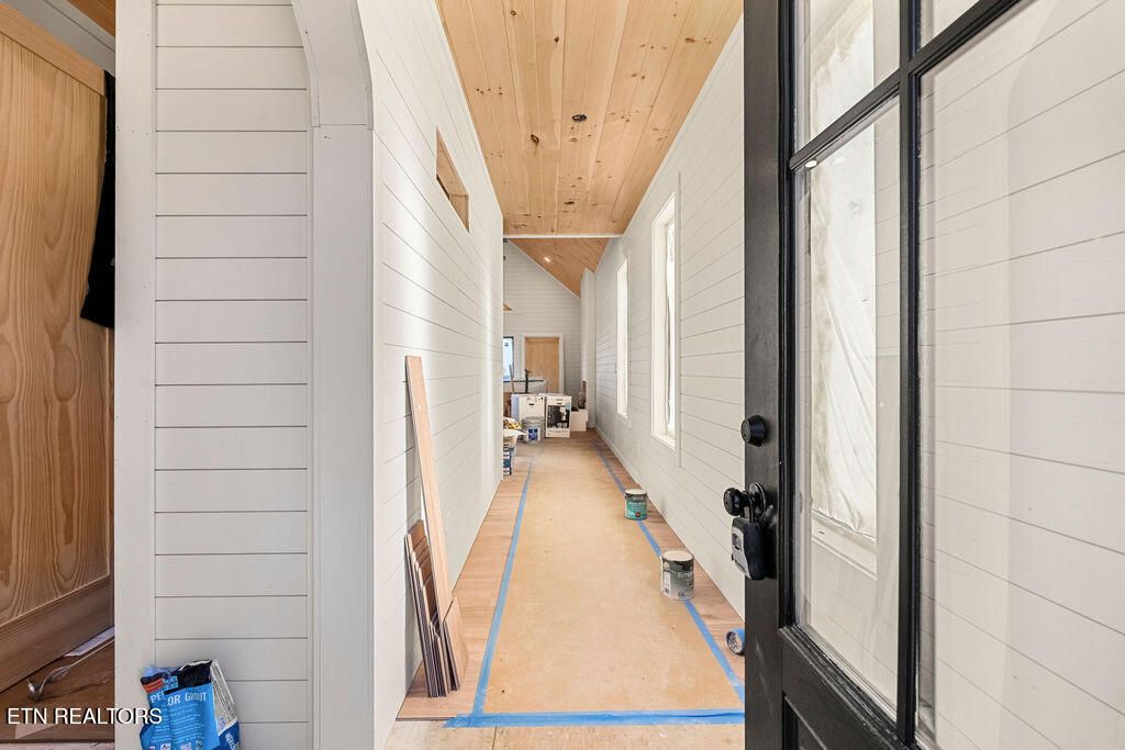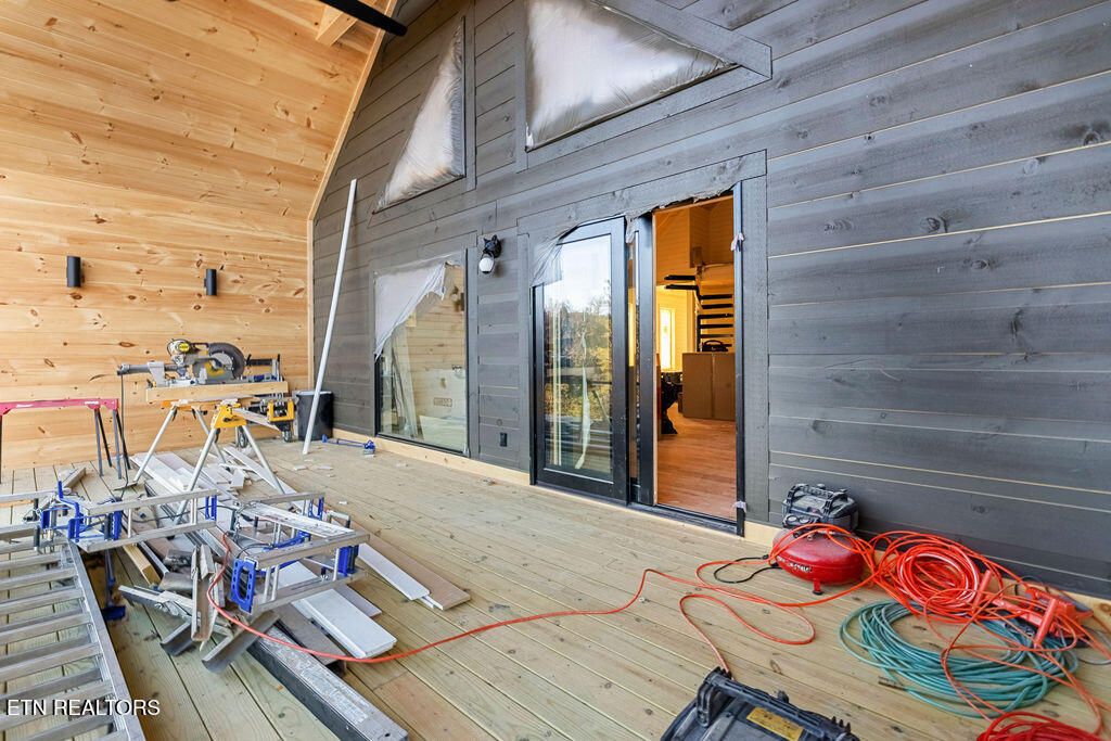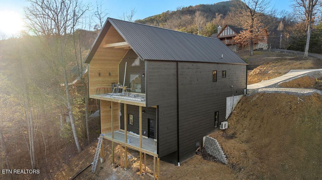 Experience modern mountain living in this newly constructed Scandinavian-inspired cabin, thoughtfully designed with clean lines, natural textures, and premium finishes throughout. Perfectly positioned to face the Smoky Mountains to the east, the home captures breathtaking sunrise views from every angle. A modern yet inviting atmosphere flows through the space, highlighted by vaulted ceilings on the main level, twelve-foot ceilings in the basement, and eight-foot interior and exterior doors that create an open and elevated feel. Tongue and groove ceilings extend throughout the home, with tongue and groove finishes covering most of the walls, blending warmth and texture with the cabin's minimalist Scandinavian design. Inside, the cabin offers four bedrooms and four bathrooms, including two spacious primary suites with ensuite baths that provide ultimate comfort and privacy. A unique enclosed loft bedroom is accessed by a spiral staircase, featuring its own dedicated mini-split AC system and ample storage, making it an ideal private retreat or flexible sleeping space. A cozy bunk room offers additional accommodations, perfect for guests or family. All bedrooms are designed with open closet systems, soundproofed walls, and high wall-mount outlets for TVs, ensuring both comfort and convenience. The bathrooms are elegantly finished with three double vanities, three walk-in tiled showers with built-in niches, and one bathtub/shower combination, offering a luxurious spa-like experience throughout. A massive owner's closet adds to the thoughtful storage solutions, while a walk-in laundry and pantry located just off the kitchen enhances daily functionality. The lower level features a fully finished basement with soaring twelve-foot ceilings, offering a dedicated media room, movie theater, and game room designed for entertaining and relaxation. A built-in electric fireplace adds warmth and ambiance to the main living area, creating a cozy yet modern mountain retreat atmosphere. Outdoor living spaces have been intentionally designed to maximize enjoyment of the surrounding natural beauty. Covered decks provide year-round use and seamless indoor-outdoor flow. The upper deck is ideal for dining, grilling, and lounging while taking in panoramic Smoky Mountain views. The lower deck includes a hot tub with a 220-volt hookup and spigot, along with ample room for additional seating. A thoughtfully placed outdoor fire pit offers the perfect gathering spot to relax and take in the mountain scenery under the stars. Practical features blend seamlessly with the home's stylish design. A hardwired 220-volt, 60-amp Level II EV charger is conveniently located on the front porch for modern living. The concrete driveway is complemented by professional landscaping and low-voltage up-lighting set on timers, creating a beautiful and functional exterior environment. Beneath the home, a large, well-lit crawl space with gravel flooring provides massive additional storage and easy access. This exceptional property combines minimalist Scandinavian aesthetics with luxurious mountain living, making it an ideal primary residence, second home, or high-performing vacation rental. Call to schedule your showing today!