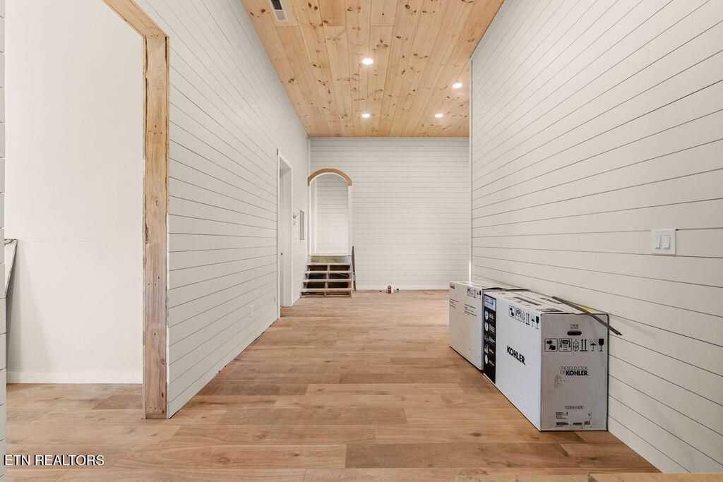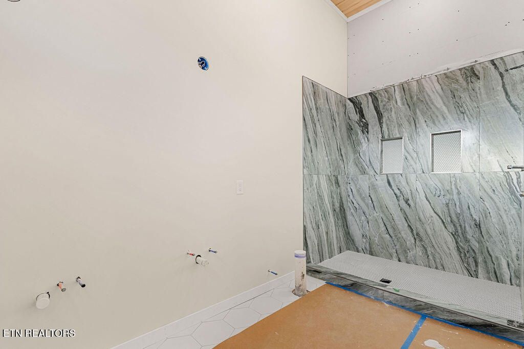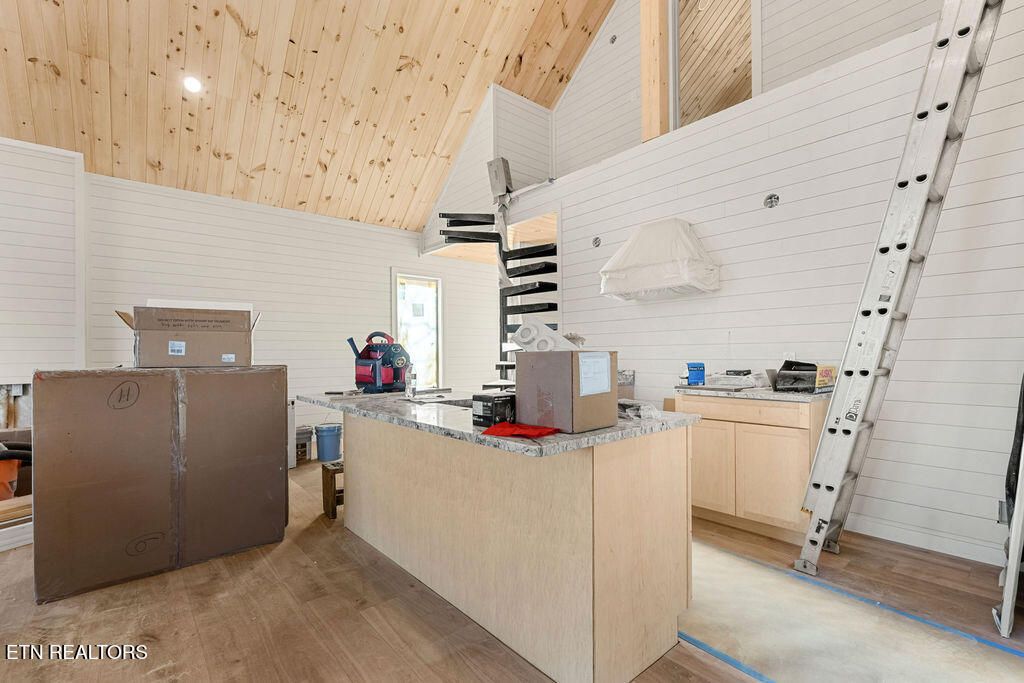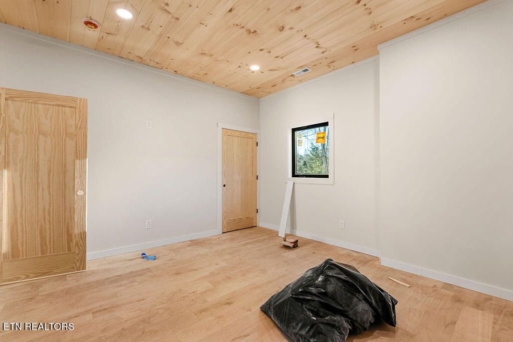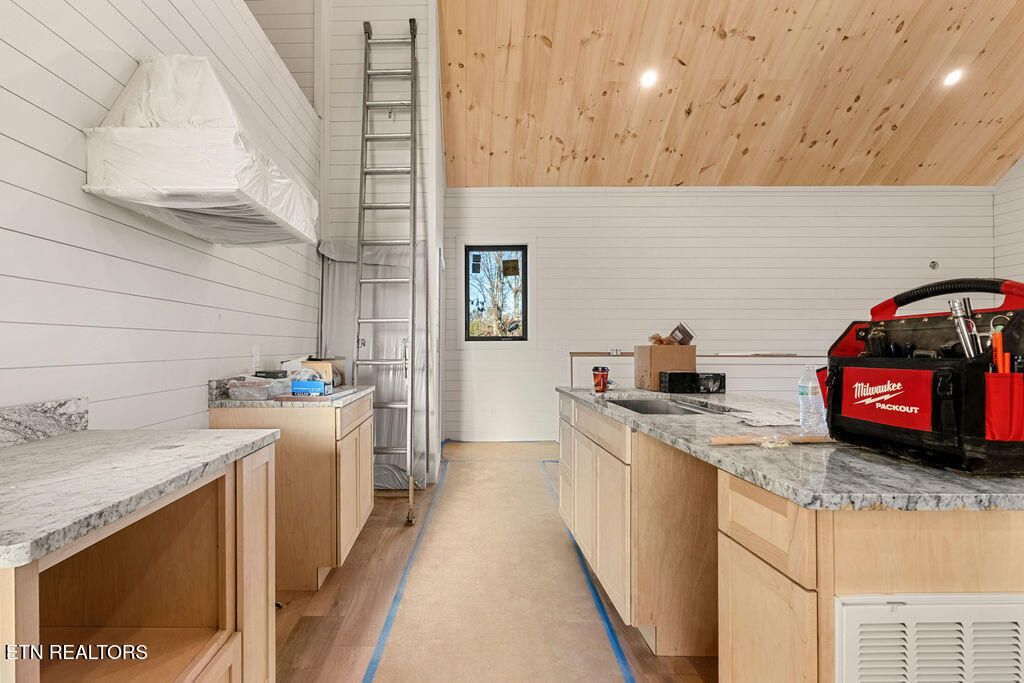 Experience modern mountain living in this newly constructed Scandinavian-inspired cabin, thoughtfully designed with clean lines, natural textures, and premium finishes throughout. Perfectly positioned to face the Smoky Mountains to the east, the home captures breathtaking sunrise views from every angle. A modern yet inviting atmosphere flows through the space, highlighted by vaulted ceilings on the main level, twelve-foot ceilings in the basement, and eight-foot interior and exterior doors that create an open and elevated feel. Tongue and groove ceilings extend throughout the home, with tongue and groove finishes covering most of the walls, blending warmth and texture with the cabin's minimalist Scandinavian design. Inside, the cabin offers four bedrooms and four bathrooms, including two spacious primary suites with ensuite baths that provide ultimate comfort and privacy. A unique enclosed loft bedroom is accessed by a spiral staircase, featuring its own dedicated mini-split AC system and ample storage, making it an ideal private retreat or flexible sleeping space. A cozy bunk room offers additional accommodations, perfect for guests or family. All bedrooms are designed with open closet systems, soundproofed walls, and high wall-mount outlets for TVs, ensuring both comfort and convenience. The bathrooms are elegantly finished with three double vanities, three walk-in tiled showers with built-in niches, and one bathtub/shower combination, offering a luxurious spa-like experience throughout. A massive owner's closet adds to the thoughtful storage solutions, while a walk-in laundry and pantry located just off the kitchen enhances daily functionality. The lower level features a fully finished basement with soaring twelve-foot ceilings, offering a dedicated media room, movie theater, and game room designed for entertaining and relaxation. A built-in electric fireplace adds warmth and ambiance to the main living area, creating a cozy yet modern mountain retreat atmosphere. Outdoor living spaces have been intentionally designed to maximize enjoyment of the surrounding natural beauty. Covered decks provide year-round use and seamless indoor-outdoor flow. The upper deck is ideal for dining, grilling, and lounging while taking in panoramic Smoky Mountain views. The lower deck includes a hot tub with a 220-volt hookup and spigot, along with ample room for additional seating. A thoughtfully placed outdoor fire pit offers the perfect gathering spot to relax and take in the mountain scenery under the stars. Practical features blend seamlessly with the home's stylish design. A hardwired 220-volt, 60-amp Level II EV charger is conveniently located on the front porch for modern living. The concrete driveway is complemented by professional landscaping and low-voltage up-lighting set on timers, creating a beautiful and functional exterior environment. Beneath the home, a large, well-lit crawl space with gravel flooring provides massive additional storage and easy access. This exceptional property combines minimalist Scandinavian aesthetics with luxurious mountain living, making it an ideal primary residence, second home, or high-performing vacation rental. Call to schedule your showing today!