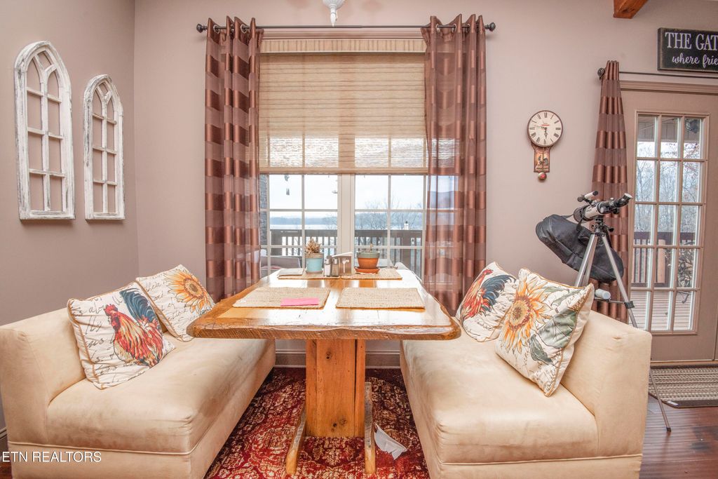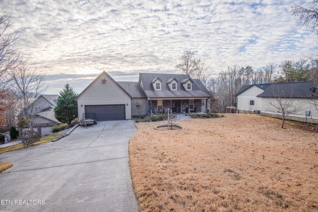Welcome to lake living at its best! This custom-built 4-bedroom, 2-bath basement ranch-style home offers an inviting open floor plan highlighted by vaulted ceilings with exposed wood beams and stunning lake views from the main living areas. The heart of the home is the kitchen that features beautiful custom kitchen cabinetry, generous workspace, and flows seamlessly into the living area anchored by a gas stone fireplace perfect for cozy evenings or entertaining friends and family. Enjoy outdoor living year-round with a covered front porch and a covered back deck overlooking Watts Bar Lake's main channel. A covered dock with lift makes lake access effortless and enhances the lake living lifestyle to the fullest. The full unfinished basement provides endless potential and includes a workshop, ideal for storage, hobbies, or future expansion. Located in a welcoming community offering lake access and a picnic area, this home delivers neighborhood charm as a full-time residence or an escape for your weekend retreats. A rare opportunity to own a thoughtfully designed lake home with breathtaking views and room to grow. Schedule your showing today!!!