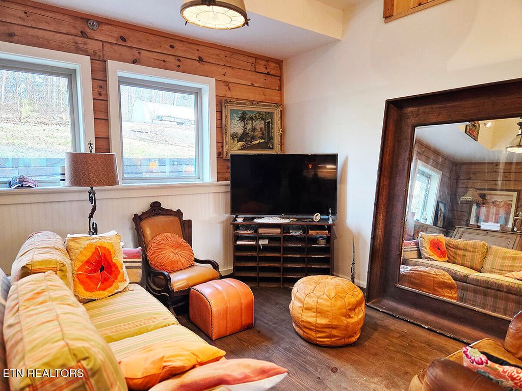 4-bedroom, 3-bath log home. Sitting on one acre, this unique home was completely rebuilt in 2018, from the foundation all the way up to a durable tin roof. This home features a brand-new front porch with custom wooden accents, offering spectacular views of the surrounding landscape. The property includes two RV parking spaces with water and electric hookups, along with an oversized burn pit, perfect for outdoor gatherings. The kitchen features a tailored wood-trim island surrounded by beautiful marble countertops. The main-level primary bedroom and bathroom are truly a retreat, featuring travertine tile and a waterfall shower system. The custom staircase showcases Dado joints built directly into the stringers, providing solid footing as you head upstairs to an office space, additional bedrooms, a full bath, and access to a deck. The 2nd floor deck has an exterior staircase that creates a private entrance to the upstairs bedrooms & bath. This separate entrance could be turned into an apartment or mother-in-law suite. Throughout the home, wide hardwood flooring enhances the authentic log home feel, while the shiplap ceilings and thoughtfully designed lighting strike the perfect balance between rustic charm and modern style. Rounding out the home is an attached two-vehicle carport that leads into a spacious mudroom and laundry room, complete with a full bathroom"”ideal for everyday convenience. Don't miss this sweet, Sweetwater home.