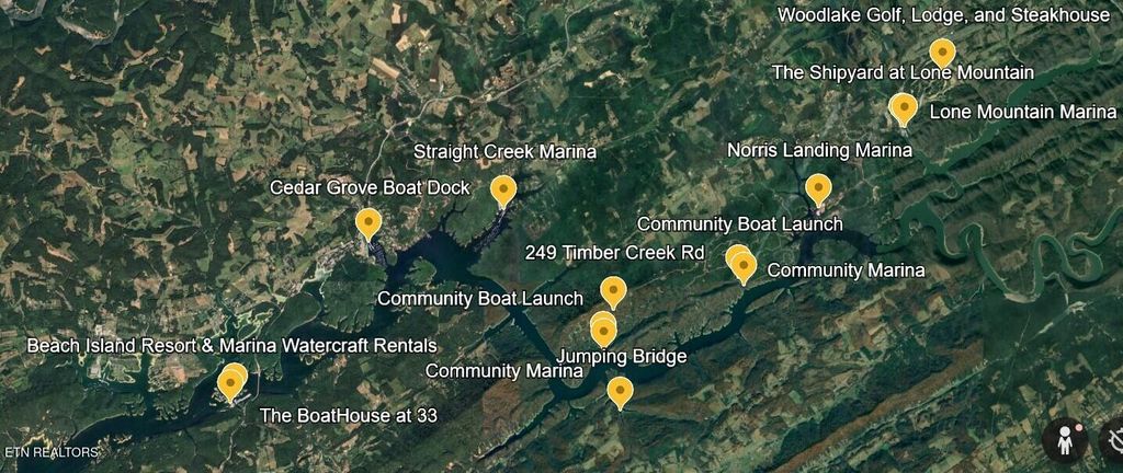 Set on over 3 acres, this mountain cabin provides privacy with scenic lake and mountain views, while remaining just minutes from Norris Lake and popular marinas including Norris Landing, Straight Creek, Cedar Grove, Lone Mountain, and Beach Island Marina, along with nearby dining and a local golf course.