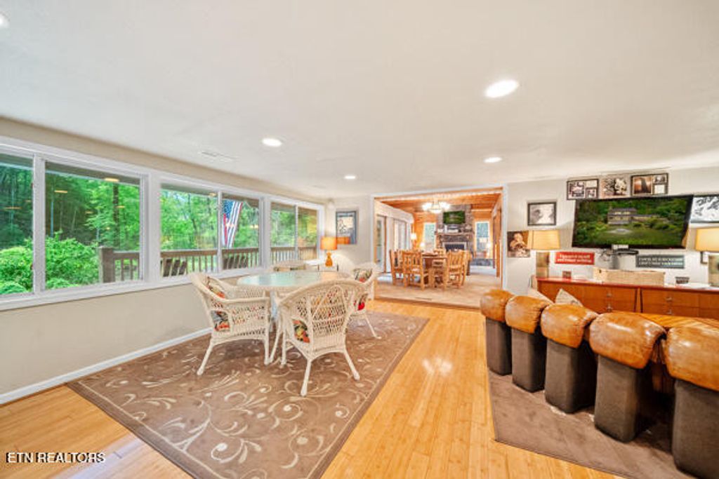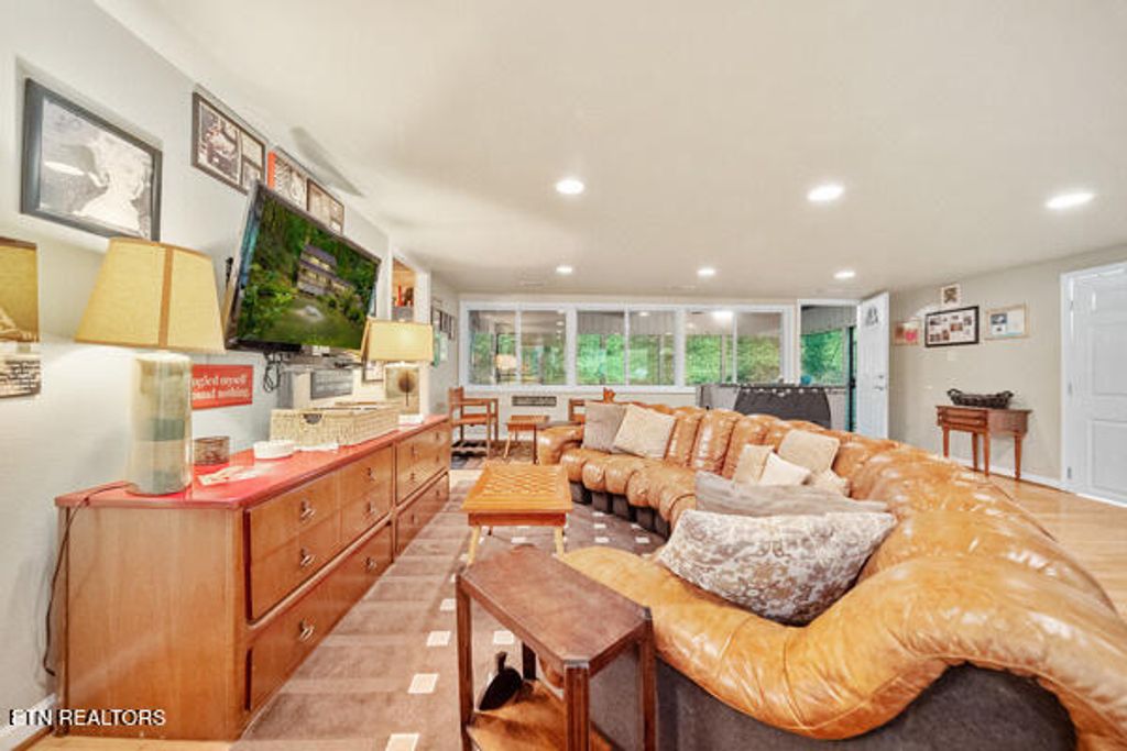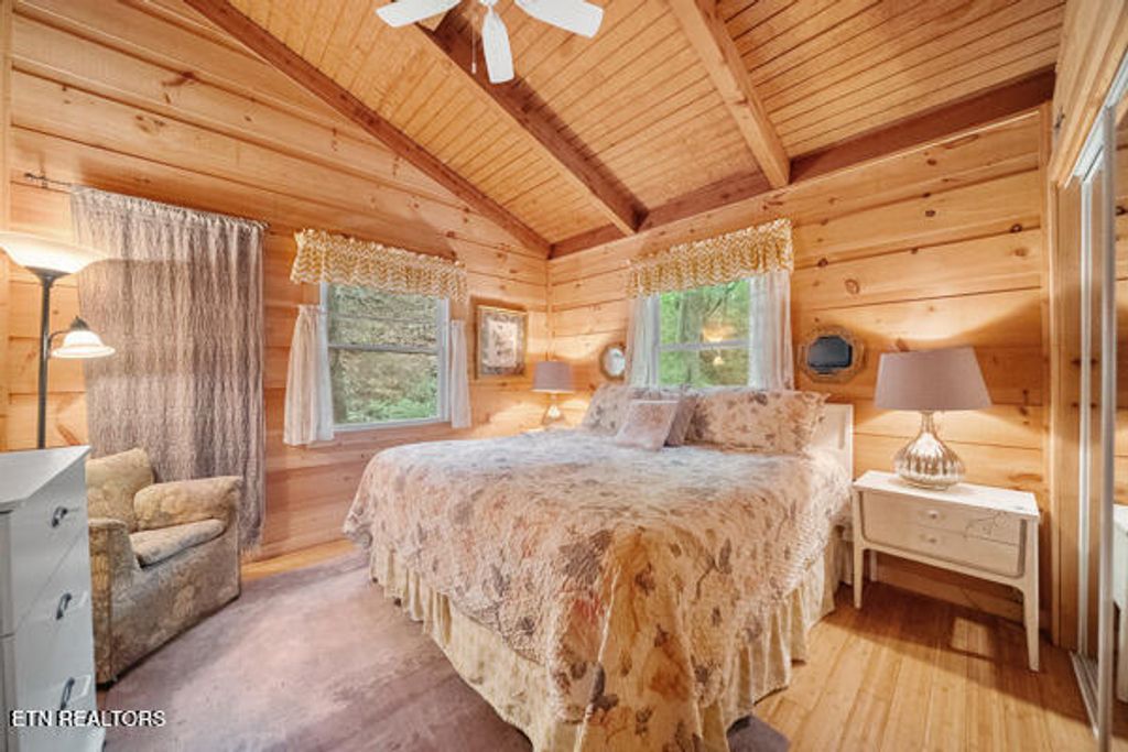 This amazing property in Shagbark has it all! Acreage, Pond, Spring Fed Creek, Cozy Mountain Home!!! The home and setting is absolutely amazing! Welcome to Catch and Release, an amazing and meticulously maintained 3-bedroom, 2-bathroom Chalet / Cabin situated on 3.13 acres with its very own stocked pond, in the peaceful and picturesque Shagbark gated community. This fully furnished three bedroom, two bath chalet has everything you are looking for in your mountain retreat, and so much more! A spring fed creek provides the water to your very own stocked pond. Sit out on the huge front deck overlooking the pond and gorgeous new landscaping, and listen to the peaceful sounds of the brand new fountain as you enjoy your morning coffee. Or sit in the BRAND NEW 5-person hot tub on the fully screened back porch and enjoy the quiet and tranquil back yard complete with everything you came to enjoy in the east Tennessee mountains. There's a new Roof on the back deck too. Once inside you are met with large open spaces and very high ceilings. The living room boasts a 30-foot vaulted rock wall that features one of the gas fireplaces, 42' flat screen TV, surround sound, and DVD. The theater/family/game room has beautiful bamboo hardwood floors, and lots of space to sit and relax. Here you can enjoy a game of foosball, or sit and look out through the glass walls toward the fishing pond and back creek. The kitchen has lots of cabinets, counter space with beautiful slate countertops, breakfast bar, and separate dining room. New refrigerator and dishwasher. Head up the floating stairs to the almost 700sf loft where you can enjoy a game of pool, watch the television down in the living room, or look out over the pond. Two zoned HVAC systems allowing you to separately control the temperature in the main cabin and the family room area. Wireless High-speed internet to keep you connected. Security cameras on premises. After fishing right outside your door, you can head to the swimming pool (seasonal), tennis courts, pickle ball, playground, and so much more, that you are surrounded with in the Shagbark community. An added plus is the 24-hour staffed guard gate controlling the single entry into Shagbark's 1300-acre resort development. But you're not done yet. Shagbark is located right in the heart of everything you came to enjoy in the Smoky Mountains. You have easy access to Pigeon Forge and Gatlinburg where you can enjoy all of the attractions, shopping, dining, and entertainment galore. Or you can head to Cades Cove, hiking, rafting, and so much more. This chalet / cabin has a fully automated Generac generator system complete with its own 500-gallon propane tank, ensuring you, or your guests, can always enjoy all of the comforts throughout your stay. Another separate 500-gallon propane tank services the cabin's fireplaces, water heater, and dryer. If you are looking for your permanent home, or second home, this one will check all of your boxes. Catch and Release is almost always booked, so if you are looking for the perfect investment property, this one checks that box too. Don't let this one get off your hook. Take the video tour, and book your showing today! *Drone photography used in some photos.
