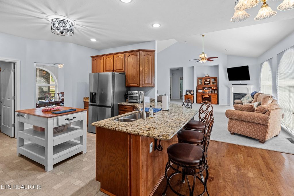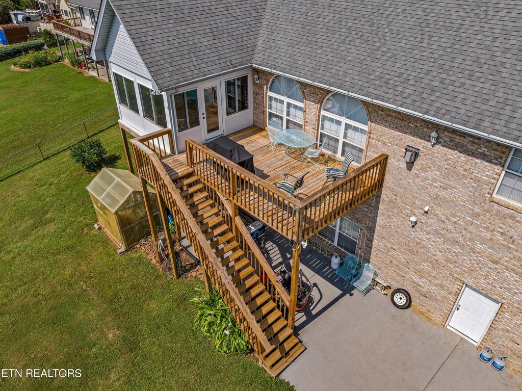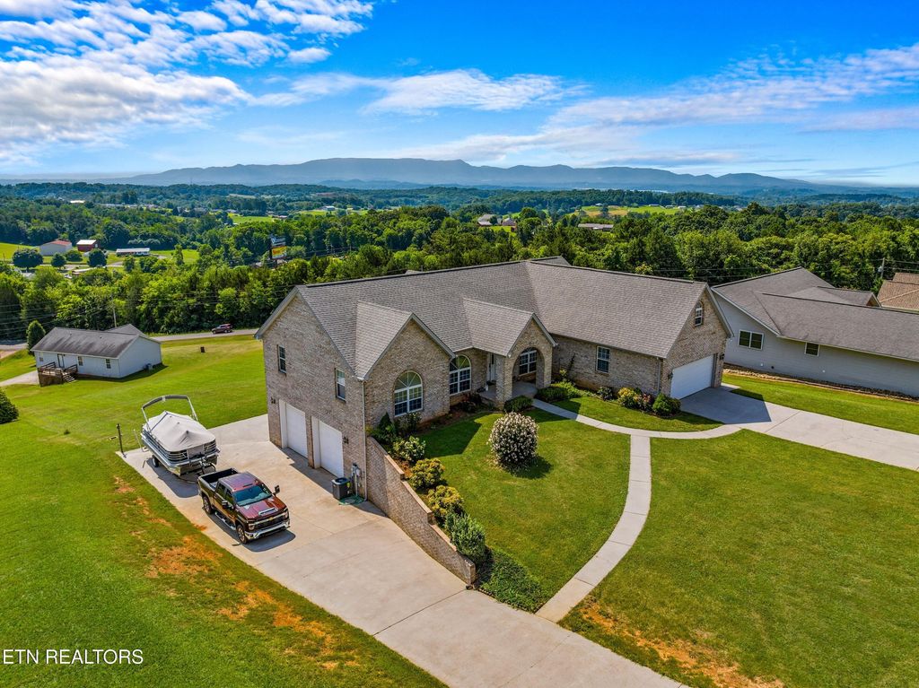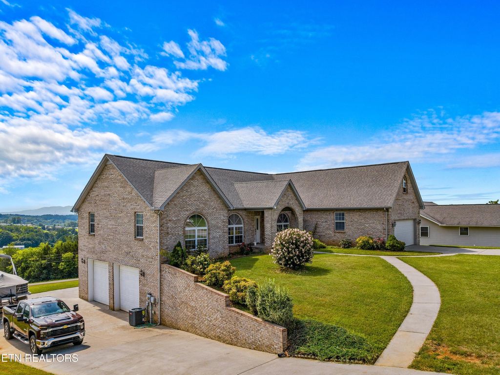 Welcome to 108 Skyline Drive, a spacious and well appointed home located in the desirable Skyline Estates subdivision, just minutes from I-40 and beautiful Douglas Lake. This 3 bedroom, 3 bathroom home offers the perfect blend of comfort, functionality, and convenience. Step inside to an impressive living room with soaring 16-foot ceilings and a cozy gas fireplace, perfect for relaxing or entertaining. The kitchen is a chef's dream, featuring gas appliances, granite countertops, an island bar, and a separate breakfast bar. A formal dining room adds an elegant touch, while the sunroom off the kitchen offers a bright and inviting space to enjoy your morning coffee. The oversized master suite features tray ceilings, a spacious walk-in closet, and a luxurious en-suite bathroom with a jacuzzi tub and walk-in shower. Upstairs, a bonus room above the garage is ideal for a playroom, office, or guest space. The partially finished basement includes a family room with a full bathroom and is built with 12-inch thick poured concrete walls for durability and peace of mind. The unfinished portion boasts oversized 12-ft garage doors, tons of storage space, a workshop area, and RV/camper electrical hook-ups.