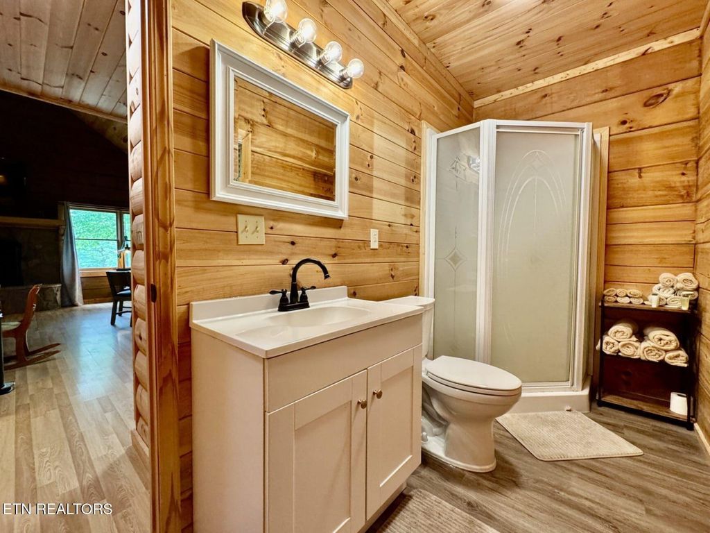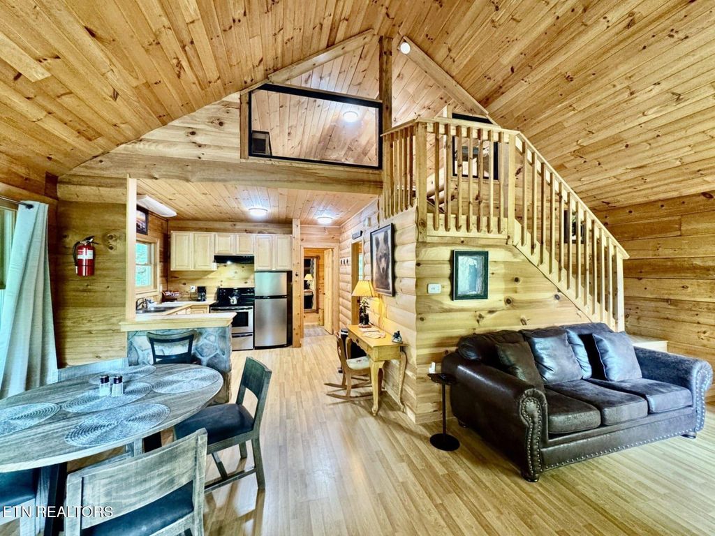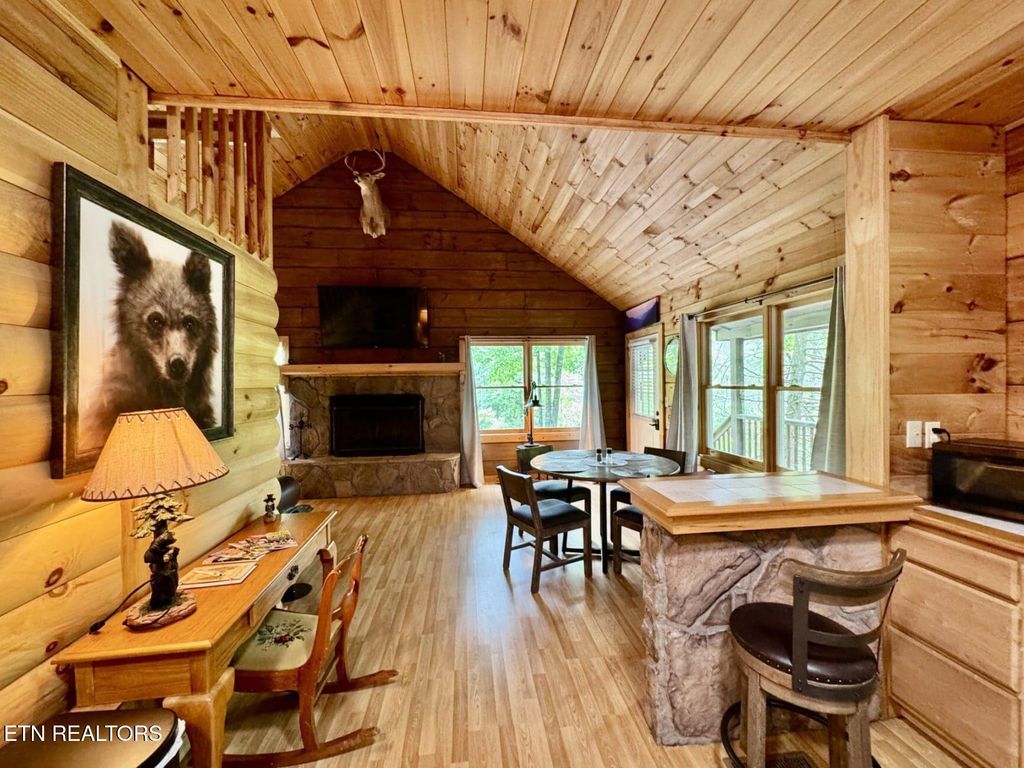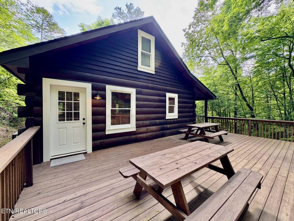 This charming cabin, built in 2005 and nestled on an expansive 5.05± acres, offers a serene woodland hideaway with proven rental income and outstanding investment potential. Currently operating as an established overnight rental with both current and future bookings in place, the property also features a cleared, pre-approved second cabin site with all utilities on site"”making it ideal for immediate development. Currently projected to bring in around 60k in gross revenue in 2026. Located just minutes from Smoky Mountain attractions, this cozy retreat combines rustic charm with modern comfort. The open-concept layout boasts a warm and inviting living area centered around a striking wood-burning stone fireplace, creating a perfect atmosphere for everyday living or a high-performing vacation rental. The main level includes a spacious bedroom with ample closet space and direct access to a large outdoor deck, while a well-designed bathroom features a walk-in shower. Upstairs, a loft-style second bedroom currently accommodates two queen beds, ideal for hosting guests. Outdoor living is a highlight, with a covered front porch, generous side deck, and a lower-level deck with a fire pit, all set against the peaceful backdrop of a cleared meadow and lush woods. A well-maintained, well-lit driveway ensures easy and safe access. Financially, the property is a strong performer on AirBnB, generating strong occupancy. Sevier County approval and septic permitting already in place, the second cabin site offers immediate potential to expand your rental portfolio. Ideally situated just off New Era Road, the cabin provides quick access to Exit 407 (20 minutes), Downtown Sevierville (under 10 minutes), Pigeon Forge (less than 15 minutes), Gatlinburg (25 minutes), and Tanger Outlets (10 minutes), making it a rare opportunity to enjoy tranquil mountain living paired with strong investment returns in one of Tennessee's most sought-after vacation destinations.
