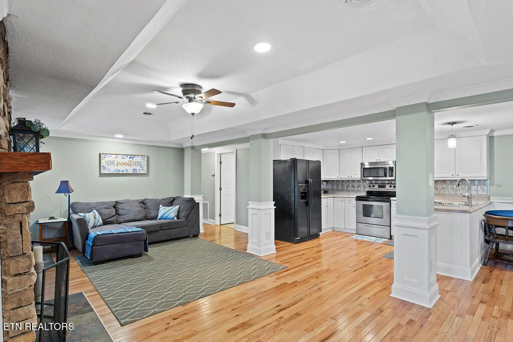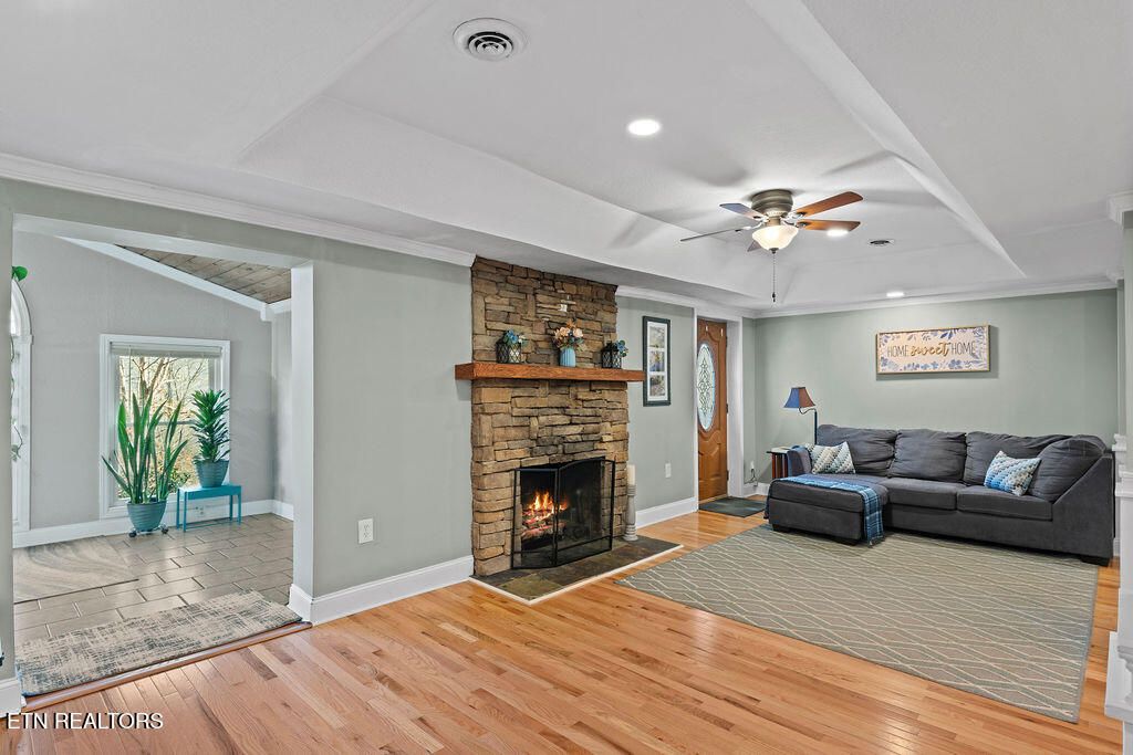 Welcome to this beautifully updated home where comfort and character come together in a truly peaceful setting. Inside, you'll find hardwood flooring throughout, fresh paint, and a stunning stone fireplace that serves as a striking focal point in the main living area.