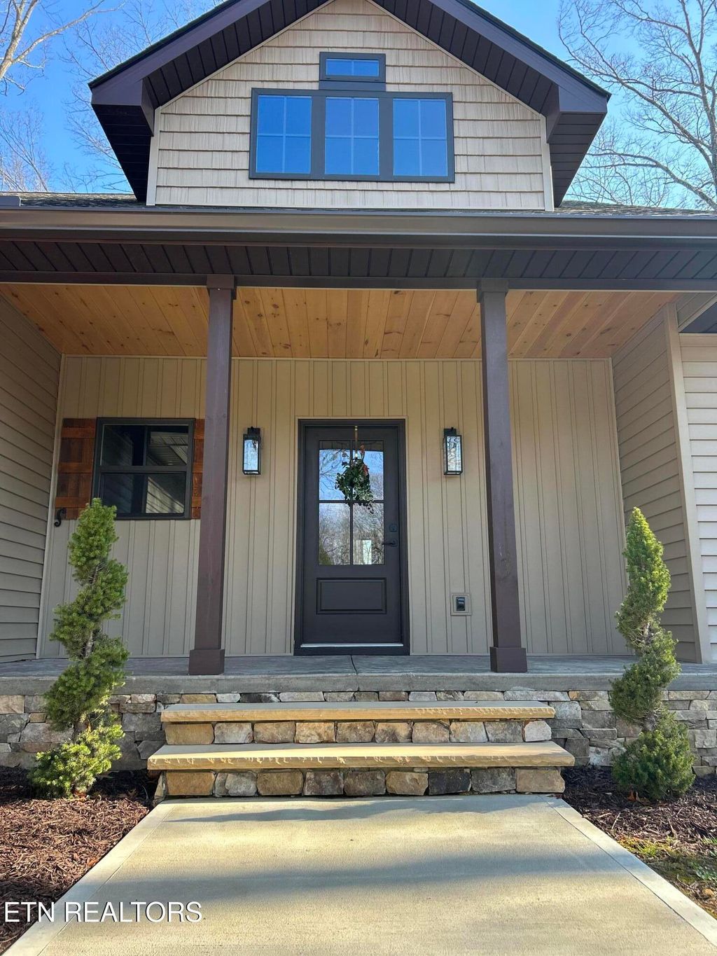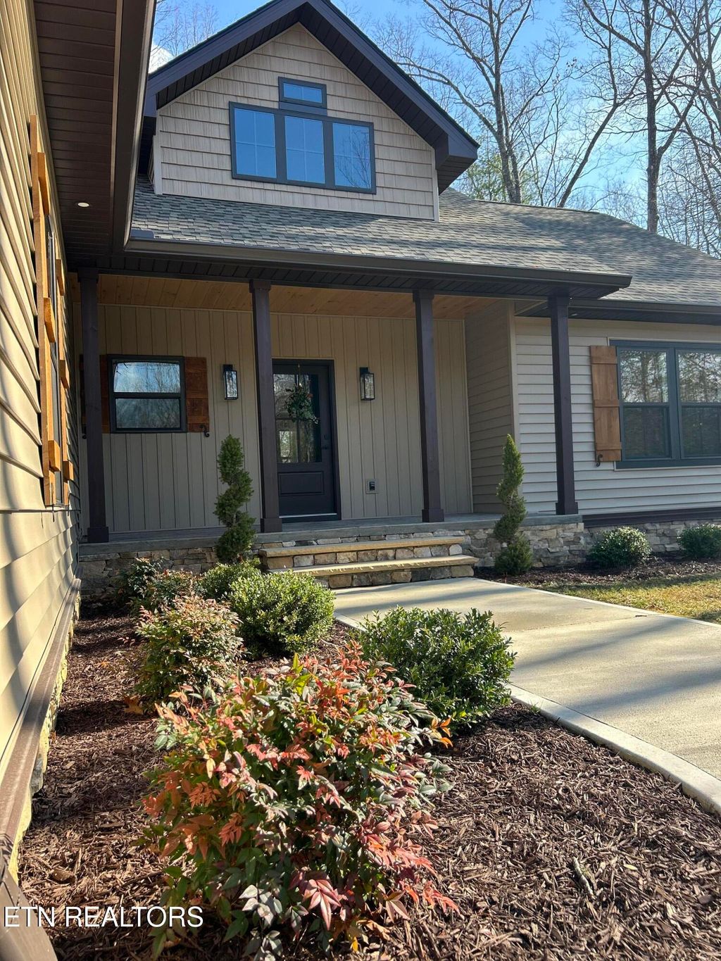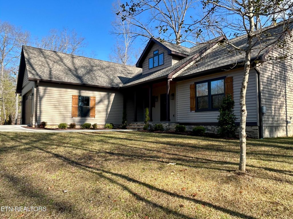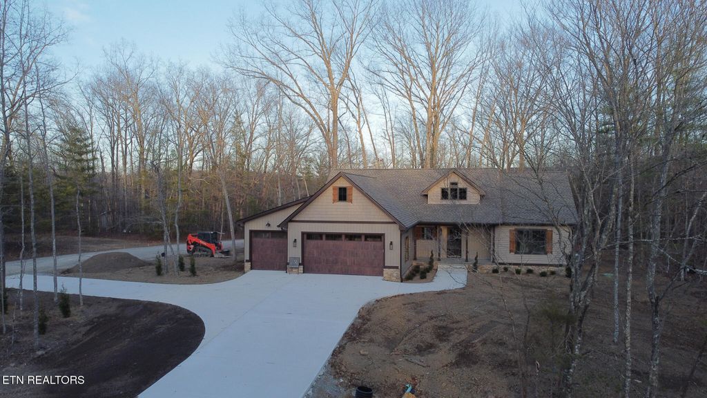 Looking for a home that checks every box? This brand-new 2025 craftsman ranch sits on one level and offers a 3-car garage, semi-circular driveway, and true wooded privacy in a neighborhood of newer homes. Built by Qualls Construction. It greets you with a generous stamped-concrete front porch, tongue-and-groove ceiling, crab orchard stone accents, board-and-batten shutters, and a timeless wood front door. Step inside to an elegant entry with wainscoting, a chandelier, and an open-concept vaulted great room anchored by a stunning fireplace. LVP floors run throughout, complemented by abundant recessed lighting. The chef's kitchen delivers top-tier appliances, soft-close cabinetry, granite countertops, a gourmet gas range, tiled backsplash, under-cabinet lighting, and a coffee bar with butcher-block counter and built-in microwave. The primary suite features a tray ceiling and a luxurious bath with dual vanities, walk-in closet, water closet, and a rain shower with handheld wand and tiled walls. The guest bath is equally impressive with beautiful tilework and another rain shower. Bedroom 2/Media room has a custom built in office, Work and/or bill paying can be out of sight, out of mind! You may wish to enjoy peaceful Tennessee living on the expansive screened porch surrounded by woods for maximum privacy, complete with tongue-and-groove ceiling, modern fan, and stamped concrete. Additional features include gas heat, gas tankless water heater, gas stub at the laundry for a dryer, laundry tub in the garage, Generac pre-wire, and an encapsulated crawl