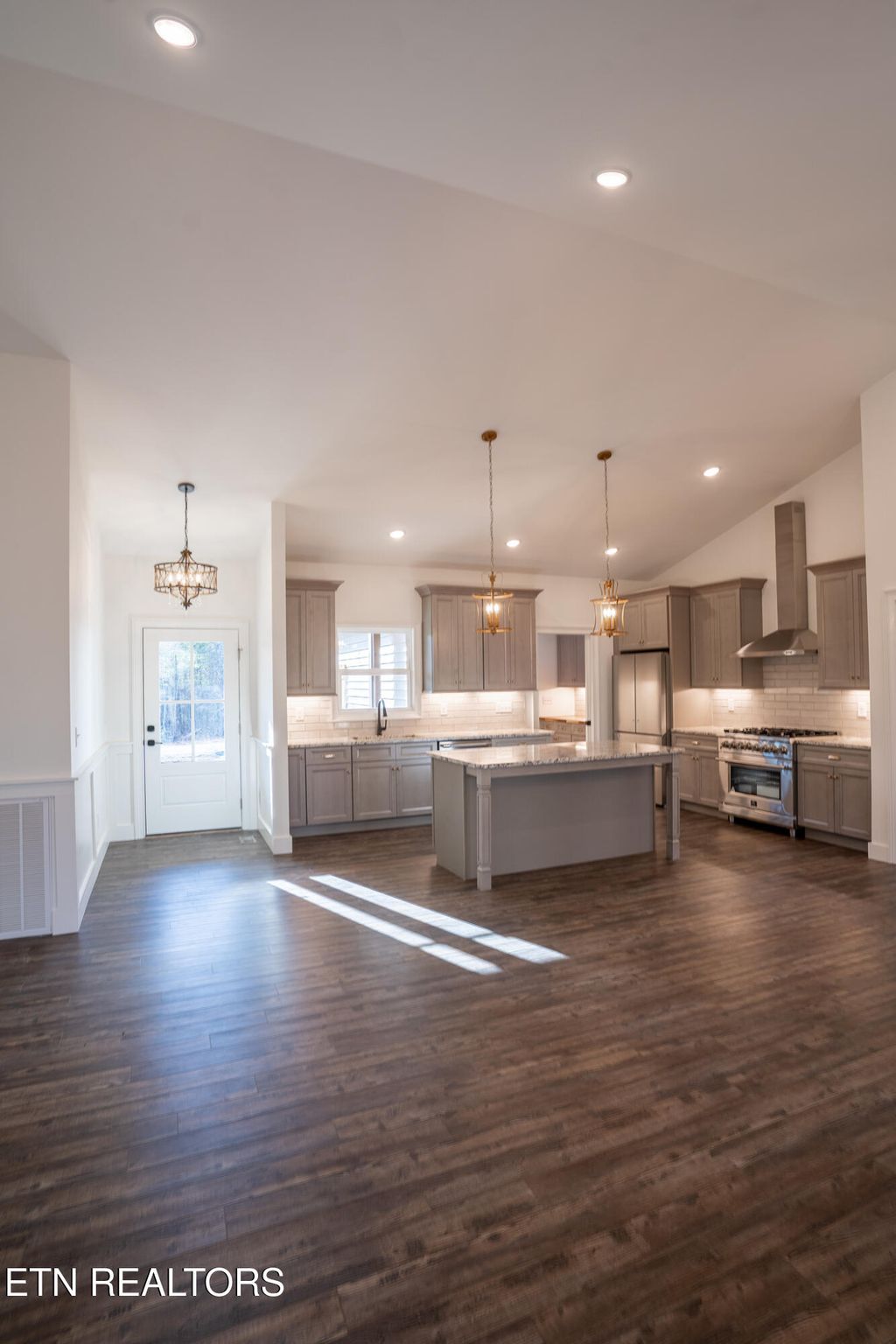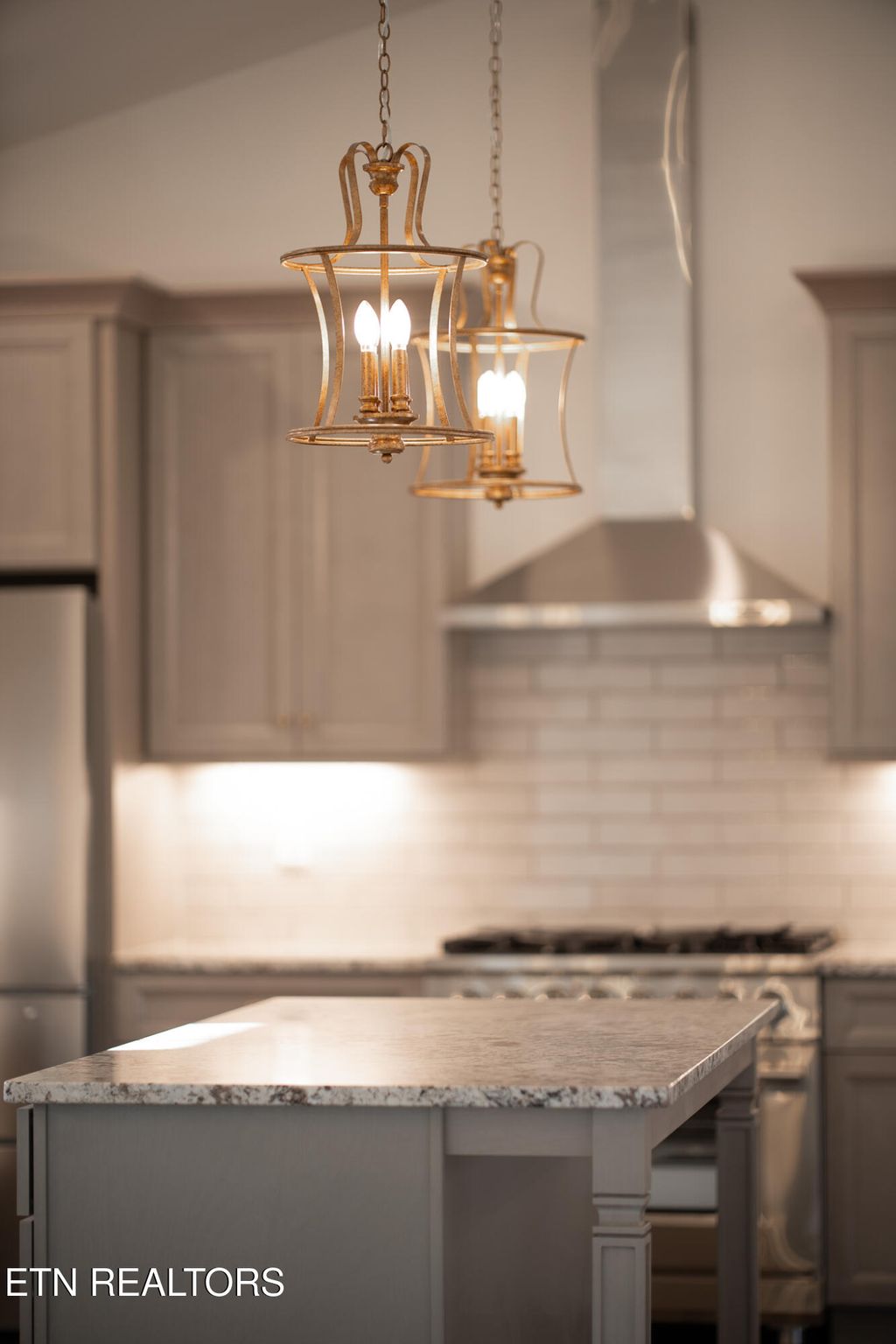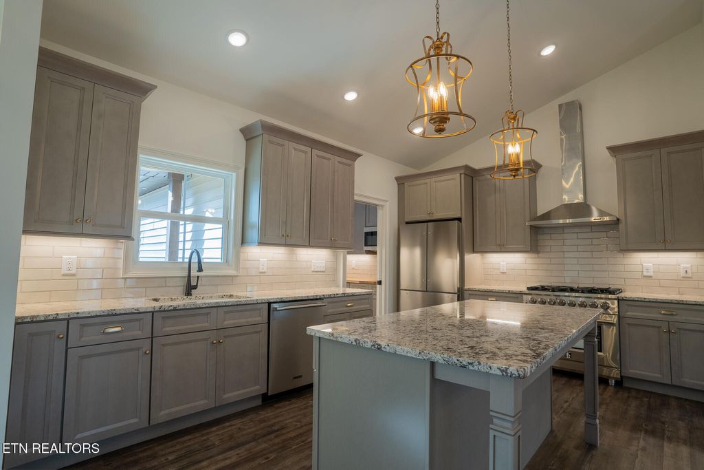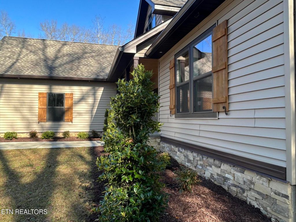 Looking for a home that checks every box? This brand-new 2025 craftsman ranch sits on one level and offers a 3-car garage, semi-circular driveway, and true wooded privacy in a neighborhood of newer homes. Built by Qualls Construction. It greets you with a generous stamped-concrete front porch, tongue-and-groove ceiling, crab orchard stone accents, board-and-batten shutters, and a timeless wood front door. Step inside to an elegant entry with wainscoting, a chandelier, and an open-concept vaulted great room anchored by a stunning fireplace. LVP floors run throughout, complemented by abundant recessed lighting. The chef's kitchen delivers top-tier appliances, soft-close cabinetry, granite countertops, a gourmet gas range, tiled backsplash, under-cabinet lighting, and a coffee bar with butcher-block counter and built-in microwave. The primary suite features a tray ceiling and a luxurious bath with dual vanities, walk-in closet, water closet, and a rain shower with handheld wand and tiled walls. The guest bath is equally impressive with beautiful tilework and another rain shower. Bedroom 2/Media room has a custom built in office, Work and/or bill paying can be out of sight, out of mind! You may wish to enjoy peaceful Tennessee living on the expansive screened porch surrounded by woods for maximum privacy, complete with tongue-and-groove ceiling, modern fan, and stamped concrete. Additional features include gas heat, gas tankless water heater, gas stub at the laundry for a dryer, laundry tub in the garage, Generac pre-wire, and an encapsulated crawl