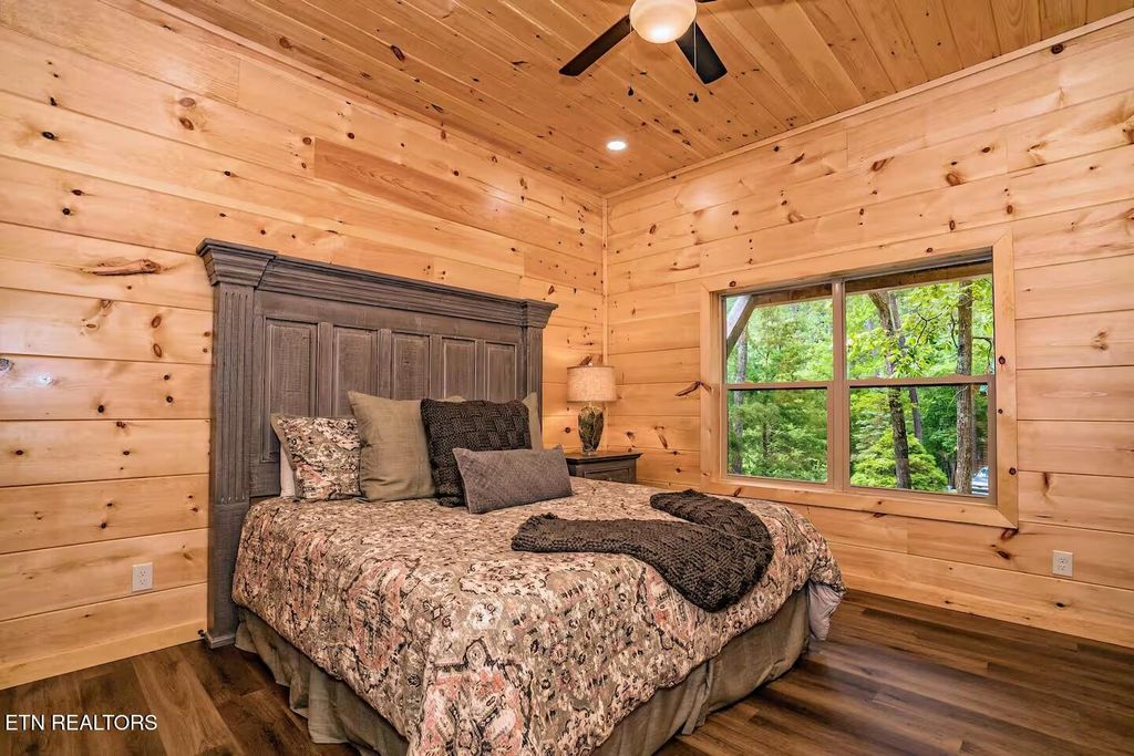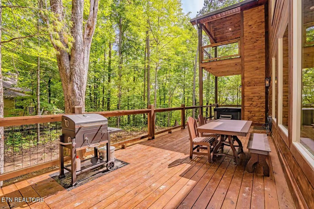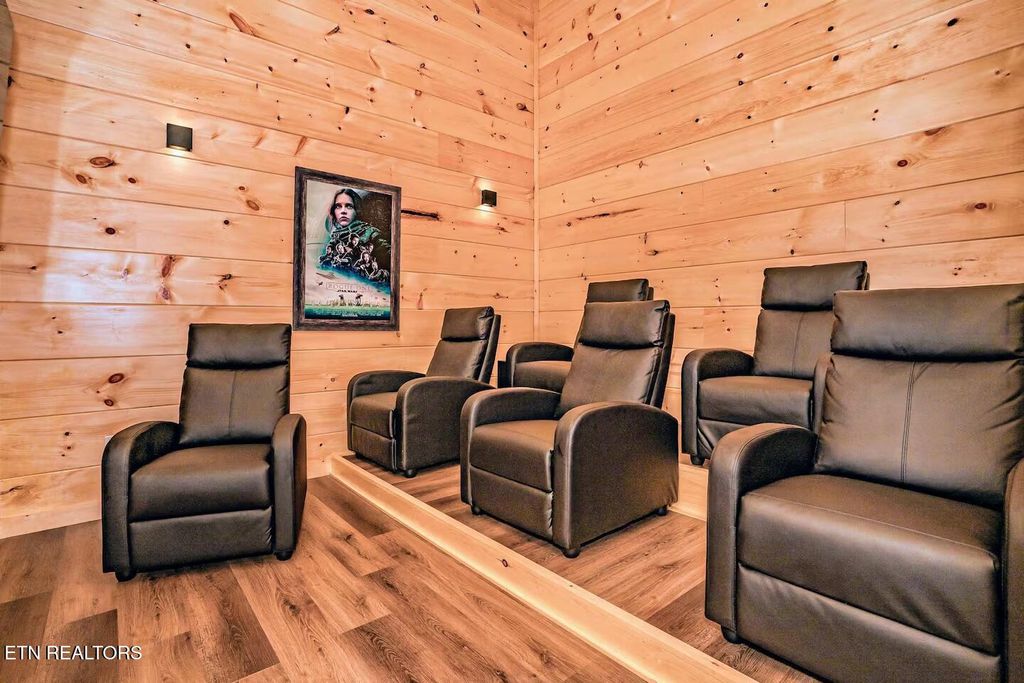 Located in the desirable Smoky Cove Community, this well-appointed cabin offers a strong layout ideal for high-performing short-term rental use. The property features four bedrooms, each with a private en suite bath, maximizing guest capacity and rental appeal. Additional income-driving amenities include a game loft and dedicated private theater, both highly sought after in the Smoky Mountain rental market. The open-concept main level is designed for durability and guest comfort, featuring vaulted ceilings, a stacked-stone gas fireplace, and large windows that enhance natural light and overall guest experience. The kitchen includes upscale cabinetry and stainless steel appliances, supporting larger groups and extended stays. Outdoor features continue the value with a stacked-stone fireplace, adding another rentable entertainment space. Smoky Cove is a proven resort community offering easy year-round access with no steep roads, along with a seasonal pool and picnic area, which increases booking demand. Positioned in one of the top-performing short-term rental markets nationwide, this property presents an excellent opportunity for investors seeking a high-end addition to their Smokies portfolio with strong guest demand and long-term upside.