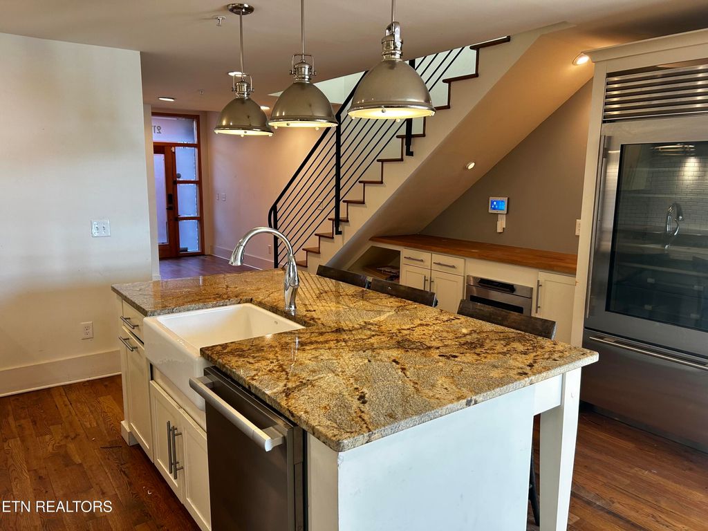 This is a corner unit with great views in two directions. 2 bed 2 bath with 1451 sqft in the Historic Downtown Knoxville area. The home had $43,000 spent on upgrades. Brand new Sub-Zero Glass Refrigerator and Miele Convection Oven. With 2 dedicated parking spaces, this complex is a great property and in the most convenient area of the city. The large windows offer great light, along with the vaulted ceiling. The common area has a fire pit, grilling and picnic area. This a must see, very easy to see.