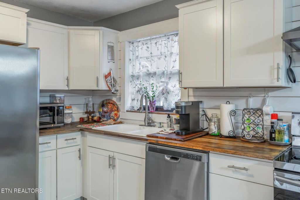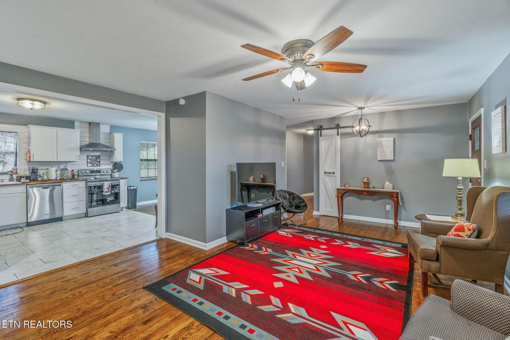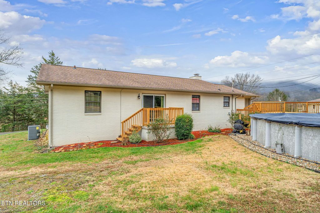 This East Tennessee dream home is ready for its new owners! This rancher has it all! The home was completely updated in 2019, so you will have classic charm and modern amenities including a new HVAC system. This home is the PERFECT LOCATION! There are mountain views from the front porch, and you are right next to Cove Lake state park, which has lake access, boat ramps, picnic areas, and paved walking paths. The house is a spacious 3 bedroom and 2 bath rancher with a basement rec/bonus room. The living room is cozy, especially with the wood burning stove. The large kitchen is completely updated and ready for dinner. The primary suite has access to the back deck and a luxurious en suite bathroom with a large shower and walk in closet! The other 2 bedrooms are perfect for guest rooms, a home office, or crafting space. The finished basement is perfect for a home theater room, play room, and all around great bonus space. The back deck and pool is perfect for summer days and BBQs! Book your showing now for this amazing house!