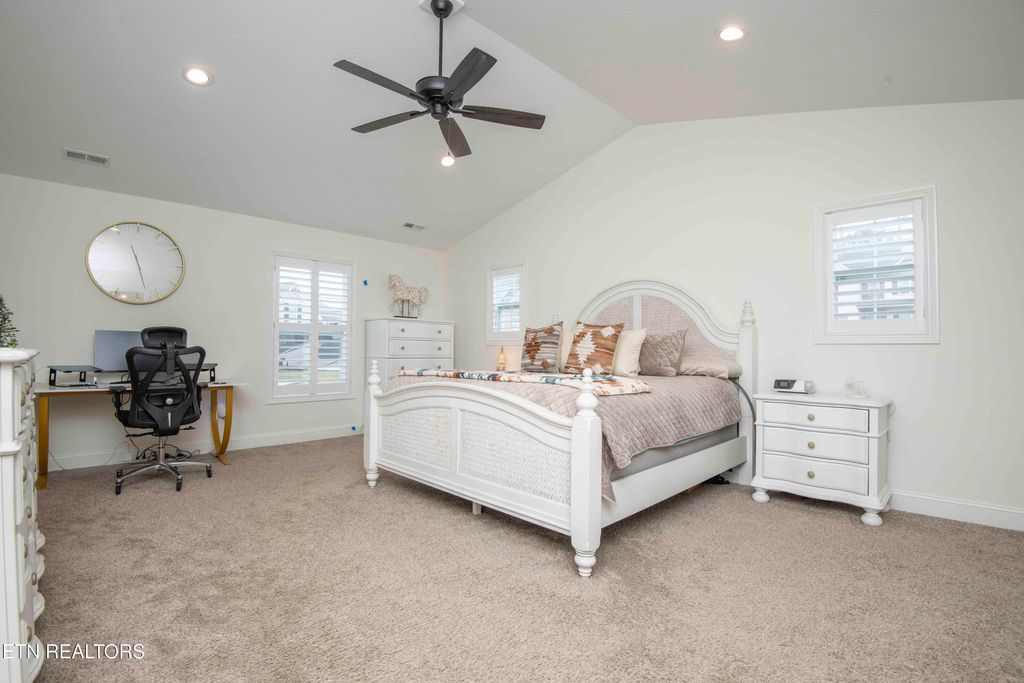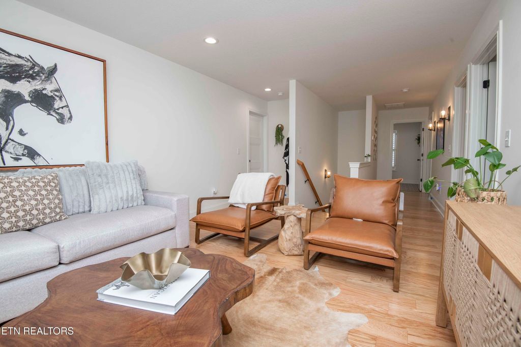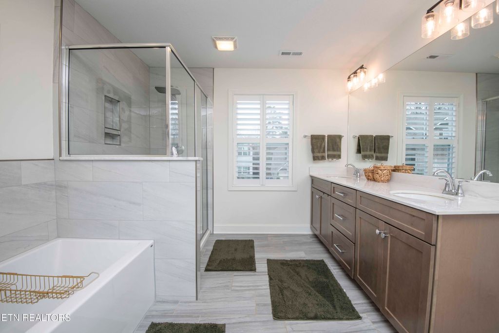 Upstairs Is The Spacious Owners Suite With Vaulted Ceiling & Luxury Bath, Tile & Glass Shower, Large Soaker Tub, Double Vanity, & Generous Closet That Opens To The 2nd Floor Stylish Laundry Room. Sellers Added Matching LVP In The Media /Multipurpose Area That Separates The 2 Remaining Bedrooms & Full Bath.