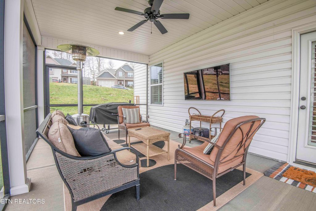 The Chef's Kitchen Is Perfection Featuring Granite Tops, Bright SS Appliances, Tons Of Upgraded White Cabinets Throughout, An Oversized Island With Seating, & A Lovely Space To Dine. The Well Designed Open Concept Allows For A Seamless Flow Into A Great Room Filled With Natural Light And A Sleek Glass Fireplace With A Hand Hewn Wood Mantel, An Entrance To The Large Screened-In Back Porch,