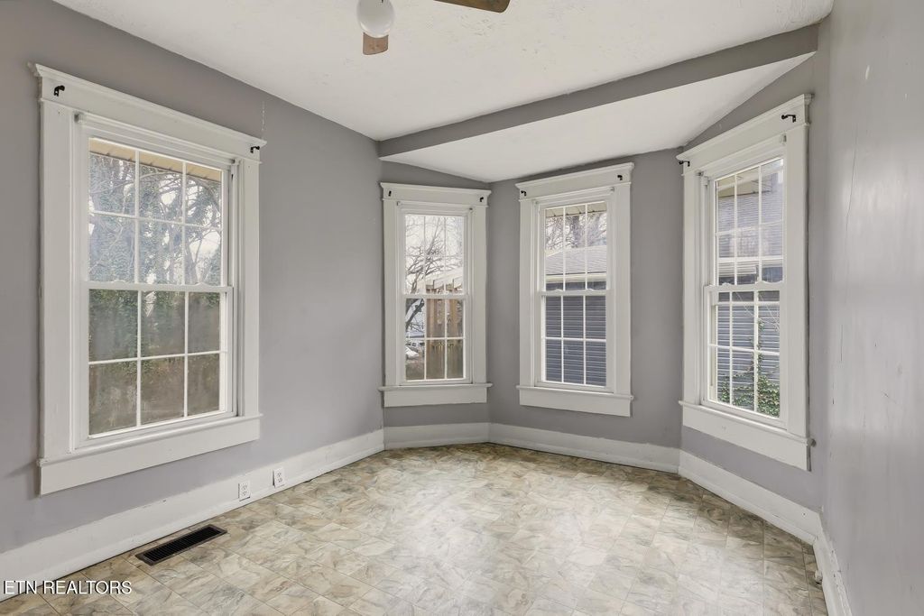 Timeless design blends effortlessly with historic craftsman charm in this character rich home ready for your personal touches. Beautiful hardwood floors flow throughout the main floor and are waiting for someone to make them shine again. The dining room retains its original craftsmanship while the kitchen is a blank slate ready for a remodel. A versatile flex room with an inviting bump out window provides the ideal space for a home office, sunroom, or craft studio. A bedroom and full bath complete the main level. Upstairs you will find an oversized bonus room and half bath, which could be reimagined into a generous primary suite. The updated electrical, newer sewer lines, new duct work and HVAC keep money in your pocket for creating your dream home or investment property. This convenient location is minutes from the interstate and downtown Knoxville and situated right across the street from the new Girls Inc.