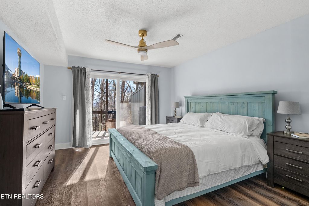 Tucked away in a very secluded condo community of only eleven total units, this beautifully maintained 2-bedroom, 2-bathroom home offers peace and privacy. You will appreciate the inviting custom-built wooden front porch, perfect for relaxing. Step inside to discover all new windows and sliding glass doors, filling the space with natural light. The main level showcases an updated kitchen with stainless steel appliances, a dedicated dining area, a secondary bedroom with private balcony access and a full bathroom. Downstairs, the home opens into a spacious living room with high ceilings and a stunning stone fireplace. Sliding glass doors will lead to the back patio where you will enjoy wooded views! The primary bedroom is generously sized and offers an en suite bathroom with a double vanity. Additionally, there is direct access to the back patio from the primary bedroom as well. Don't miss your chance to be apart of this peaceful, well-kept property. Schedule your private tour today! See MLS documents for full list of property improvements.